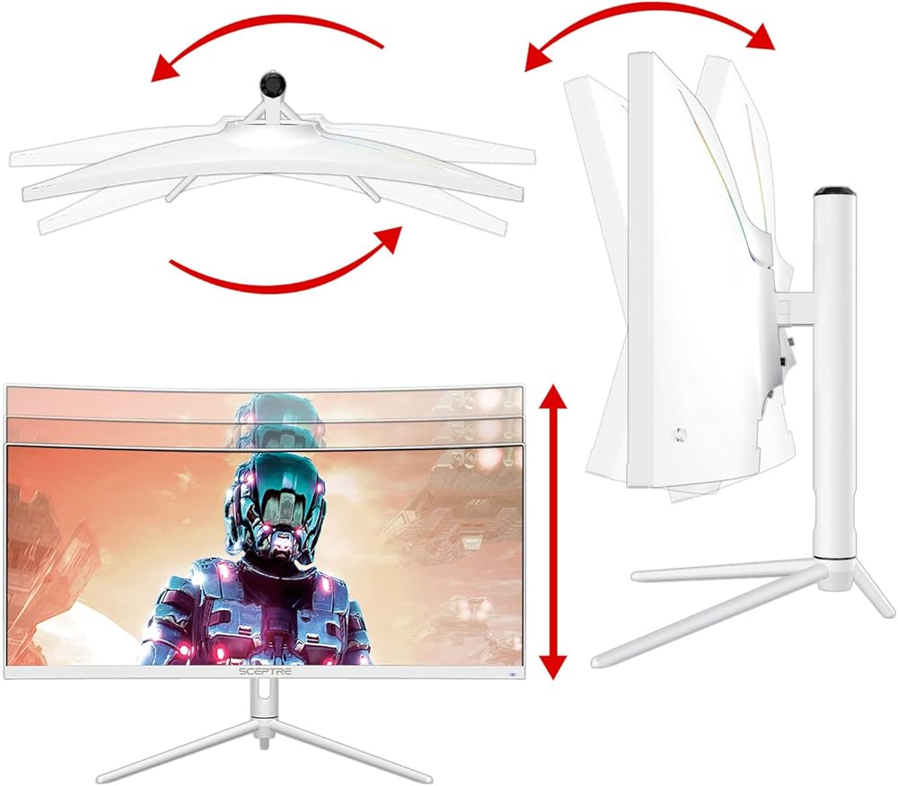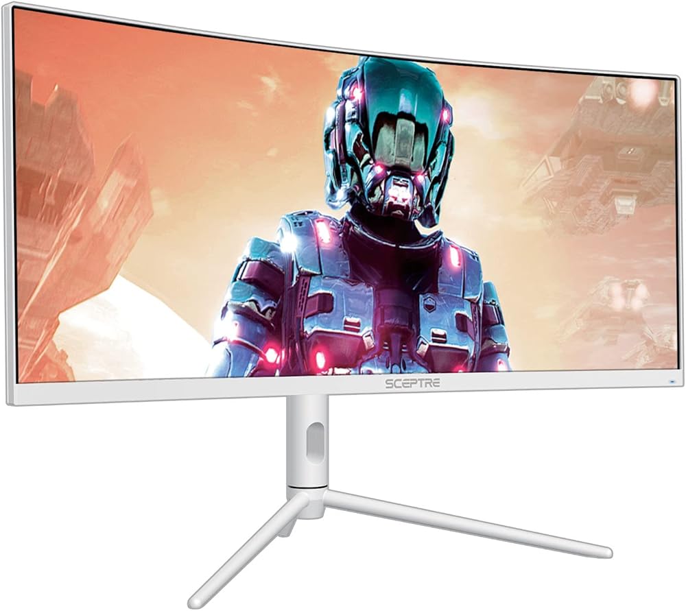 شاشة Sceptre منحنية فائقة العرض مقاس 30 بوصة 2560 × 1080 حتى 200 هرتز DisplayPort HDMI 1 مللي ثانية AMD FreeSync Premium 99% sRGB صورة حسب الصورة/PIP، مكبرات صوت مدمجة باللون الأبيض (C305B-FUN200W)