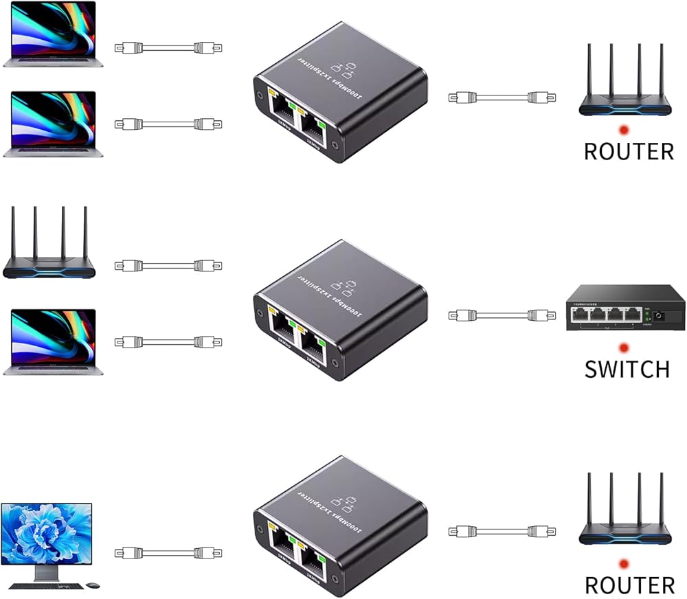 【الاستخدام الأمثل للشبكة】قم بتوصيل جهازين وشبكهما في وقت واحد باستخدام موزع إيثرنت عالي السرعة. تعظيم الاستفادة من موارد شبكتك وتعزيز استقرار اتصالاتك. لا داعي للقلق بشأن إدارة اتصالات الأجهزة المتعددة.