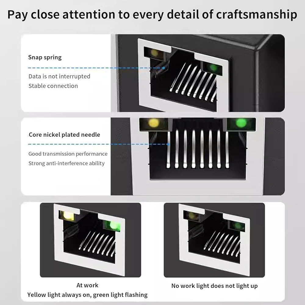 【نقل بيانات ثابت وموثوق】تمتع بتجربة نقل بيانات موثوقة ومستقرة للألعاب والبث ومشاركة الملفات والمزيد. يضمن مقسم الشبكة RJ45 الخاص بنا تجربة شبكة سلسة ومتواصلة دون المساس بالسرعة أو الجودة.