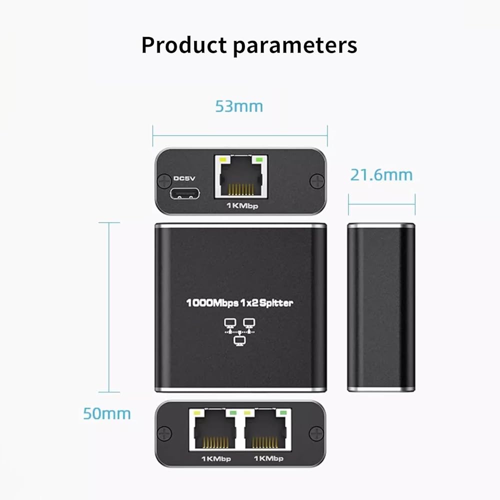 توسيع شبكة مريح وفعال: مع موزع إيثرنت 1 في 2، يمكنك توسيع شبكتك بسرعة عن طريق توصيل جهازين بمنفذ جيجابت إيثرنت واحد. قل وداعًا لمتاعب المنافذ المحدودة واستمتع بنقل البيانات بسلاسة بسرعات عالية تصل إلى 1000 ميجابت في الثانية.