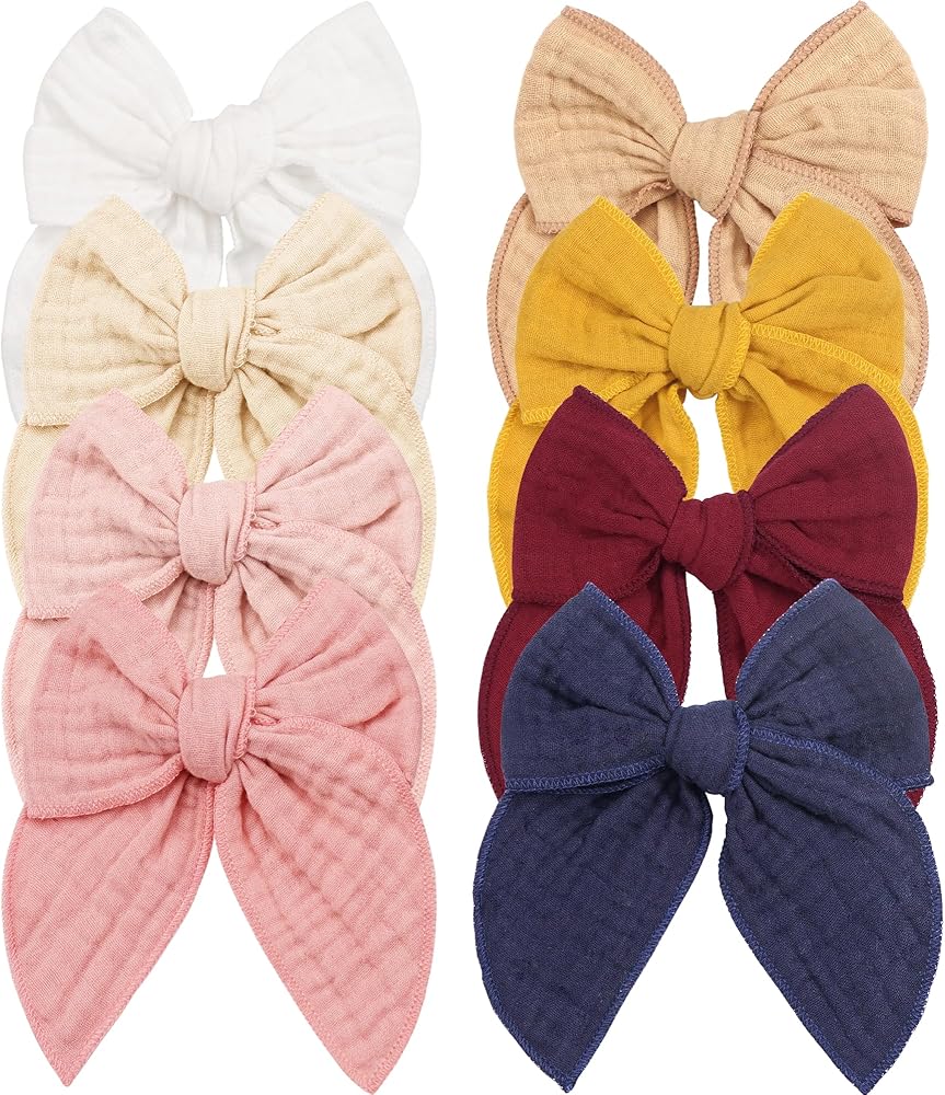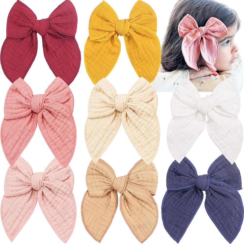8 قطع من أقواس الشعر للفتيات من CÉLLOT، مصنوعة من القطن والكتان مقاس 5 بوصات، أقواس شعر تمساح للفتيات الصغيرات والأطفال الصغار إكسسوارات شعر مصنوعة يدويًا