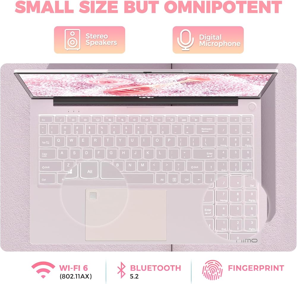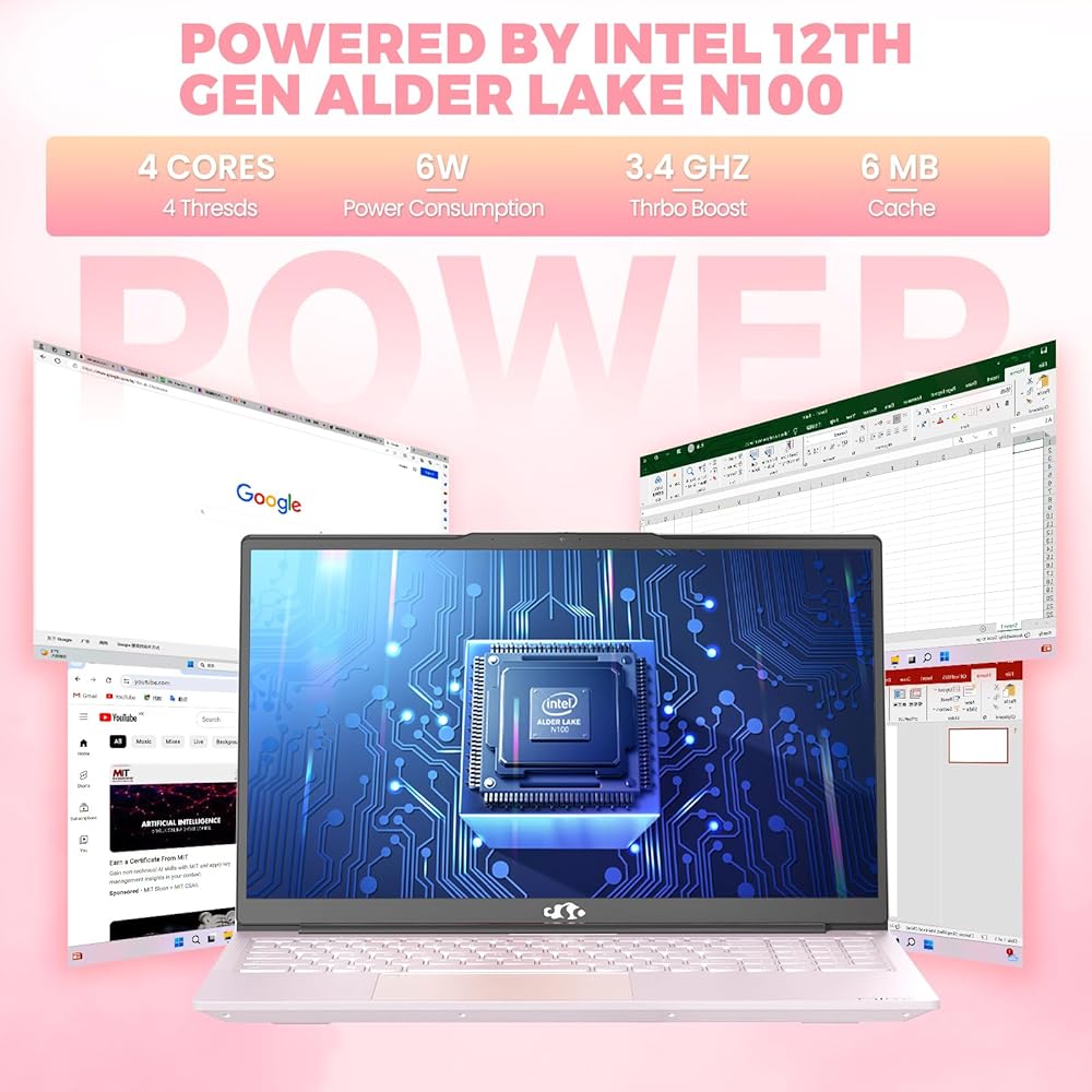 Nimo 15.6 بوصة كمبيوتر محمول، Windows 11، معالج Pentium 4-Core، Intel N100 (Beat I3 1115G4)، 8GB DDR4 512GB SSD، شاشة 1080P، WiFi 6، BT5.2، USB3.0، Type_C، كمبيوتر محمول خفيف الوزن مع كاميرا ويب، المفاتيح العددية