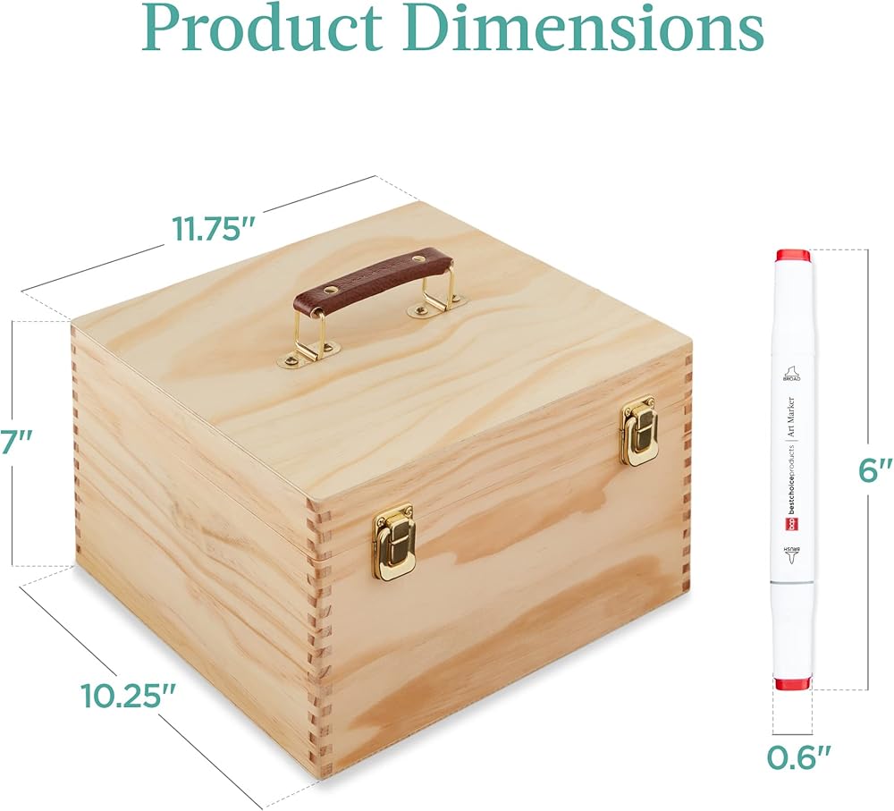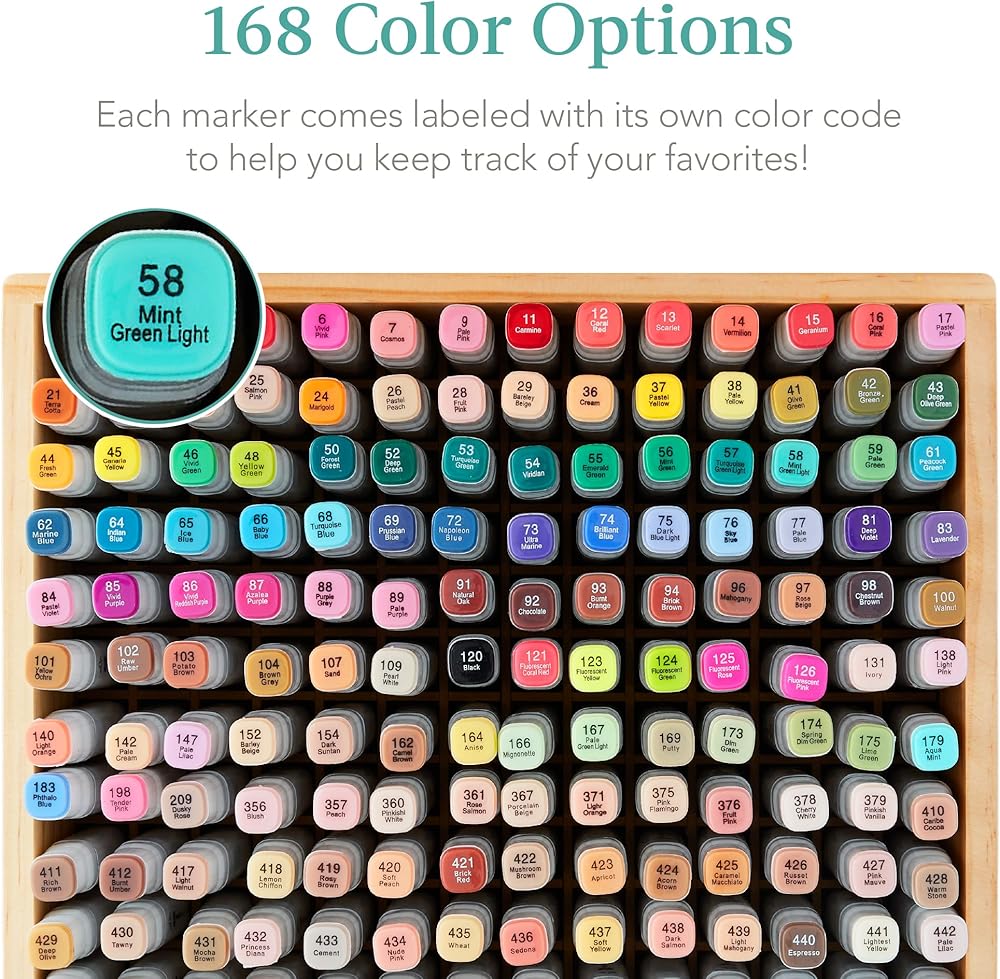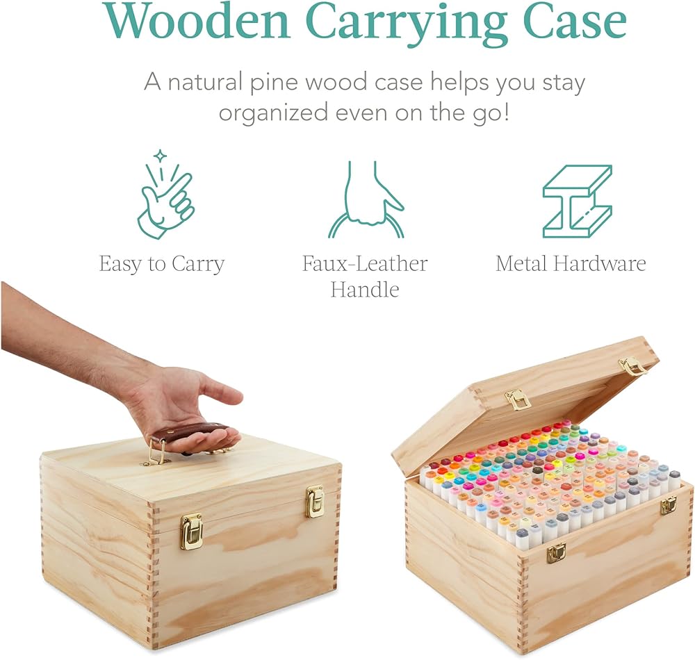 مجموعة منتجات بيست تشويس مكونة من 168 قلم تحديد قائم على الكحول، وأقلام تحديد كحول مزدوجة الرأس للبالغين، ومجموعة فنية مزدوجة الجوانب مع فرشاة وطرف إزميل، ومخطط ألوان، وحقيبة حمل خشبية - طبيعية