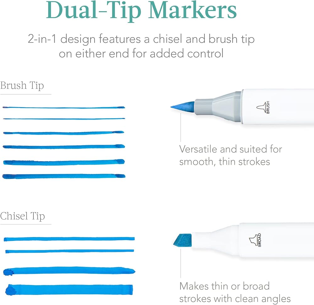 علامات تعتمد على الكحول: توفر هذه الأقلام مظهرًا ملونًا نابضًا بالحياة وتسمح بسهولة المزج بفضل الحبر سريع الجفاف المعتمد على الكحول؛ أبعاد صندوق التخزين: 11.75 بوصة (طول) × 10.25 بوصة (عرض) × 7 بوصة (ارتفاع)