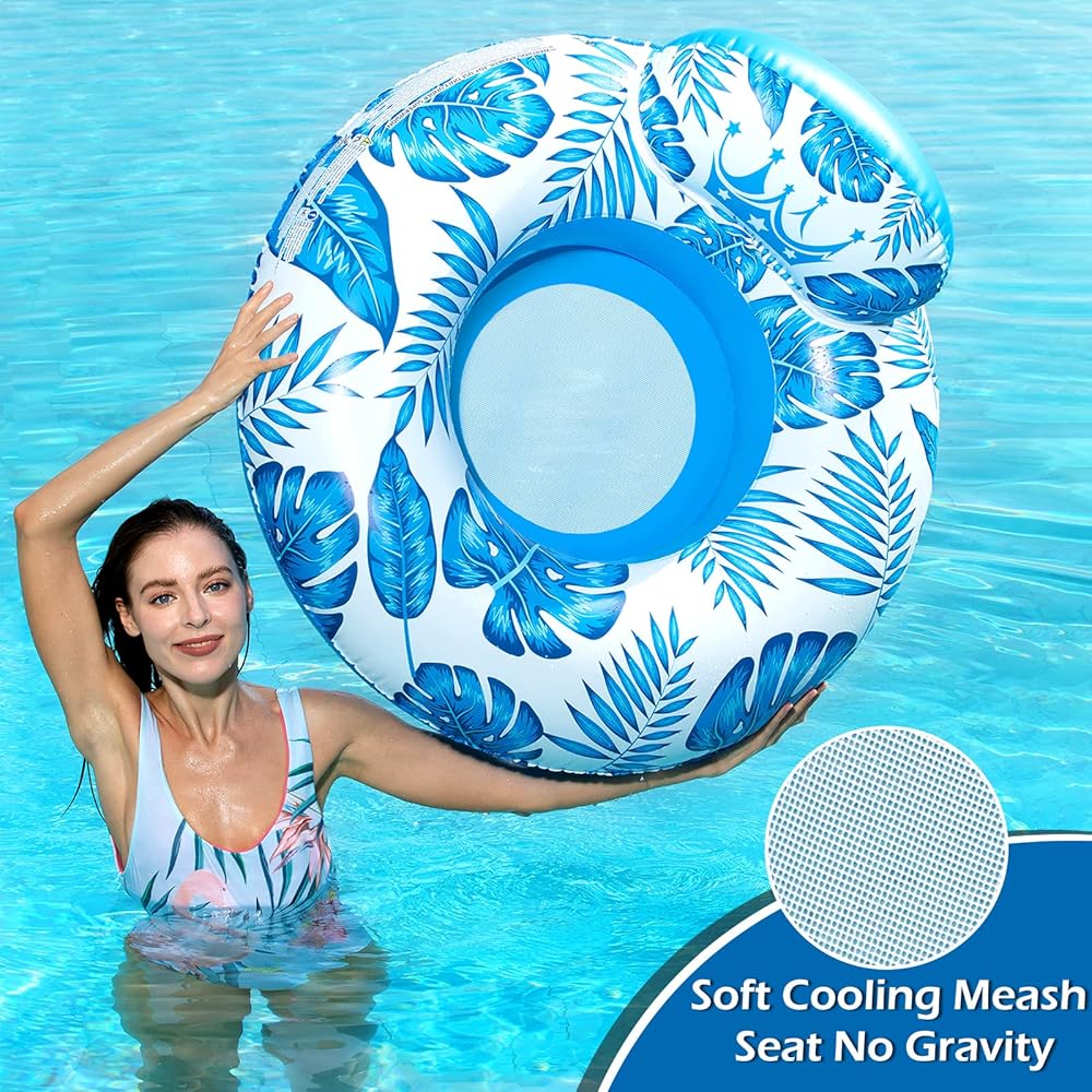 كرسي عائم مريح لحمام السباحة - يتميز بمسند ظهر داعم عريض وأنبوب دائري ومقعد شبكي مما يسمح لك بالطفو بشكل مريح لساعات من المرح والاسترخاء في أيام الصيف الحارة. راحة واستقرار كبيرين.