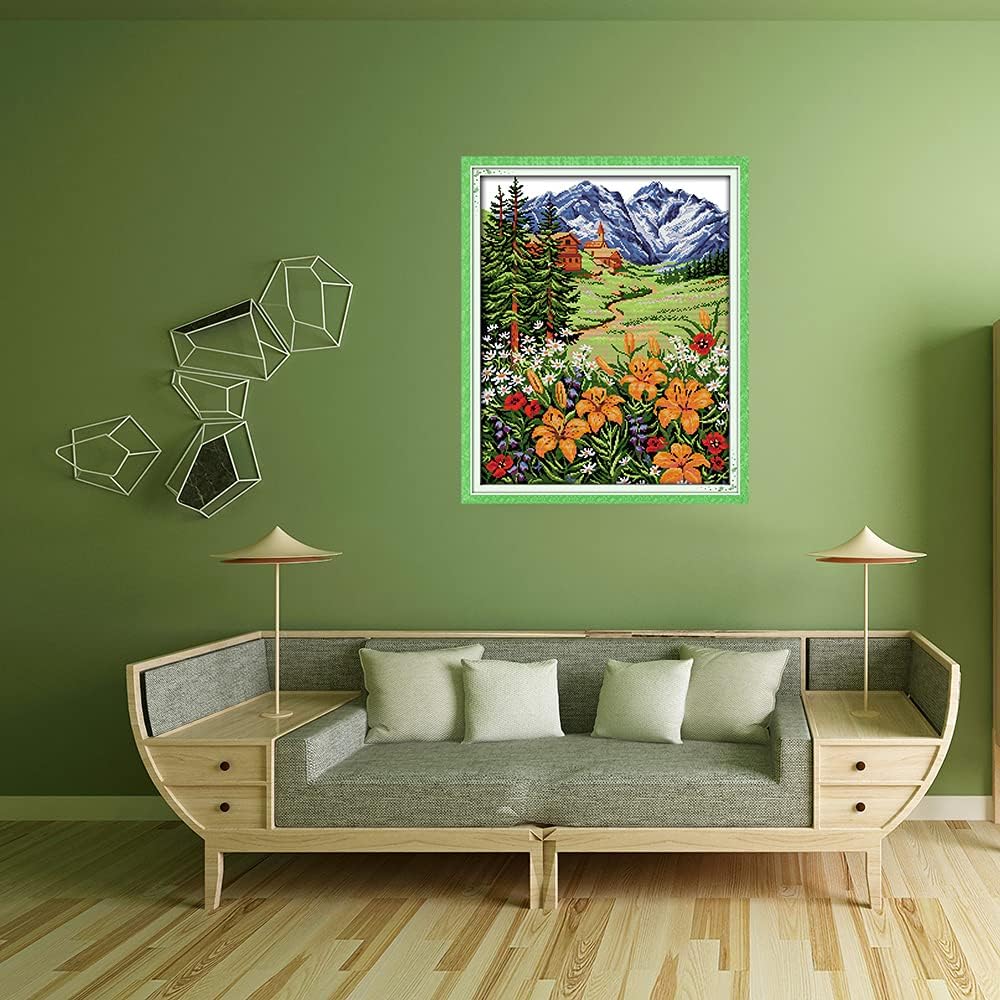 【Stamped kits or Counted kits】This is a 14CT stamped kit,the 14CT means there are 14 grids in one inch fabric,the stamped kit means the pattern has been printed on the fabric ,it is printed canvas and the pattern will be disappear after touch water.So after finishing stitching, put the fabric in water for half an hour, then make it dry, and then you can make a frame for it.