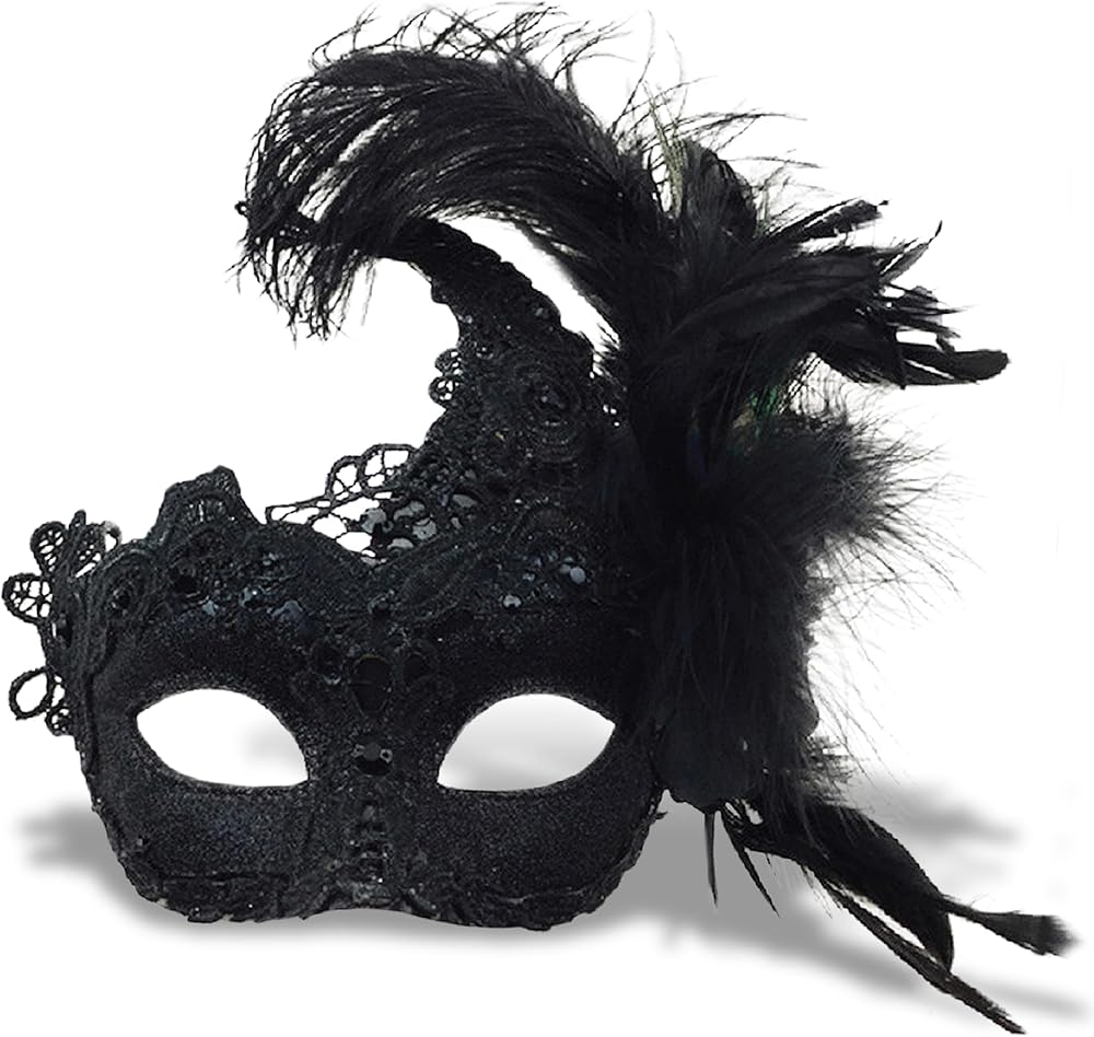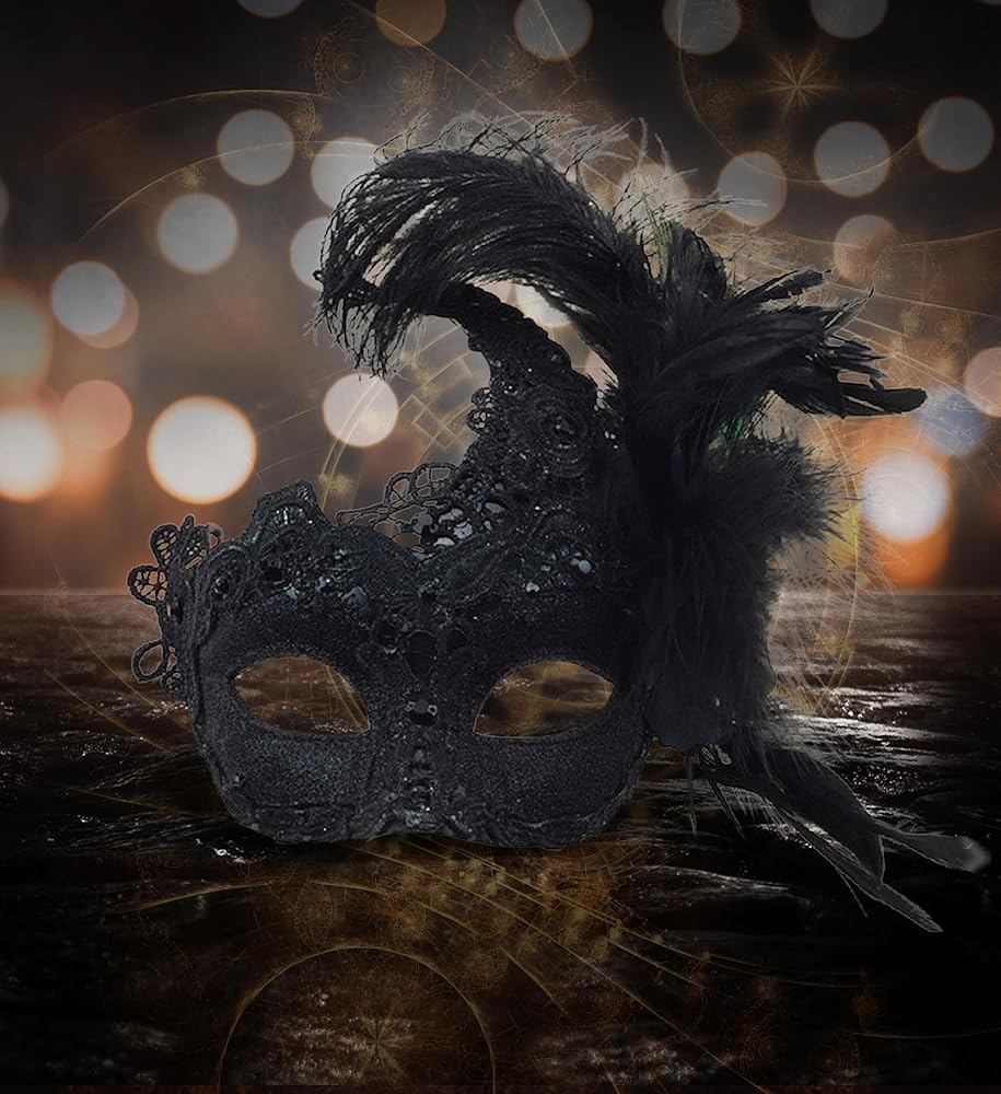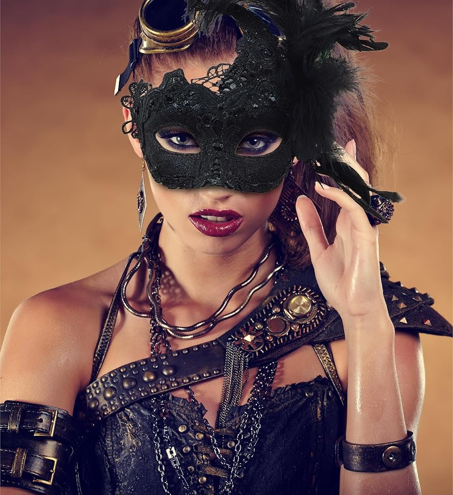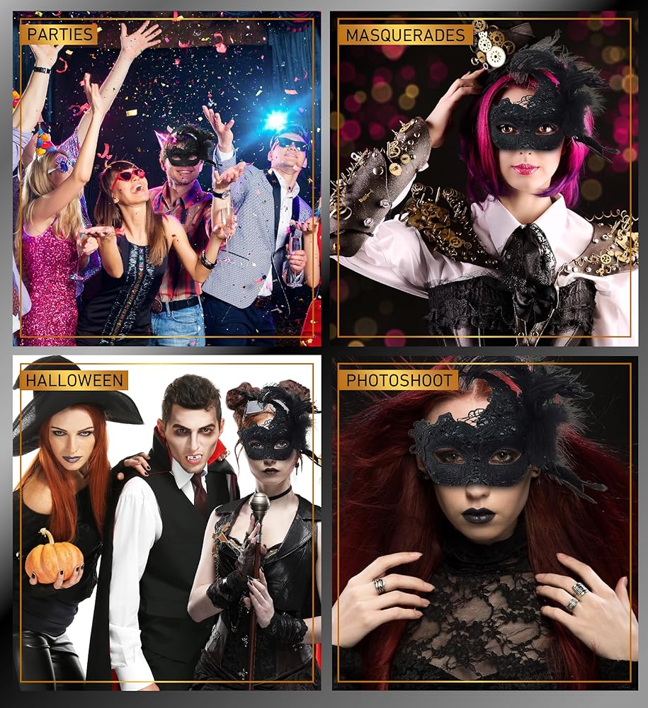أقنعة تنكرية عالية الجودة للبالغين - قناع الوجه القوطي هو قناع أنيق للحفلات التنكرية مصنوع من مواد عالية الجودة. مصنوع بتصميم معقد وتفاصيل مطرزة، مما يخلق قناعًا تنكريًا فريدًا للرجال والنساء لارتدائه في مناسبات مختلفة. يتميز القناع الأسود القوطي بدانتيل مكرامية أسود مع أحجار كريمة سوداء وريش، مما يجعله قناع حفلة تنكرية مثالي للنساء والرجال.