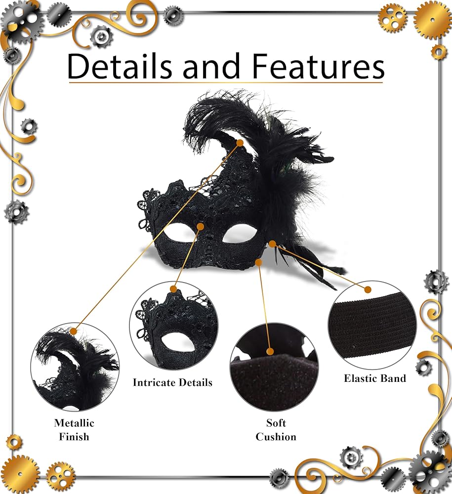 قناع الكرة التنكرية مخصص لكل من يحب الأقنعة التنكرية الفاخرة - يوفر قناع الكرة التنكرية الأسود القوطي الأنيق هذا ملاءمة مريحة لكل من المراهقين والبالغين. سيحب المتحمسون للأقنعة في مناسبات الحفلات التنكرية ارتداء زي الأقنعة التنكرية للرجال والنساء في المؤتمرات والفعاليات التنكرية والحفلات القوطية والمهرجانات. يمكن للرجال والنساء استخدام قناع البندقية الرائع لاستكمال ملابس الحفلات التنكرية الخاصة بهم.