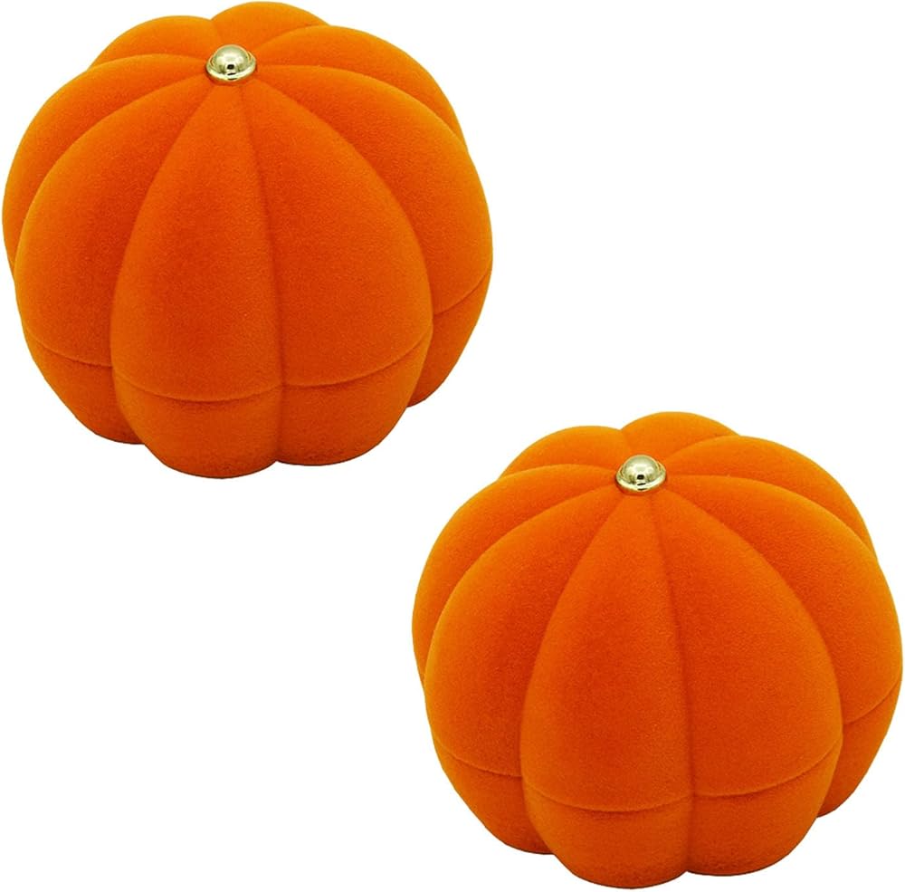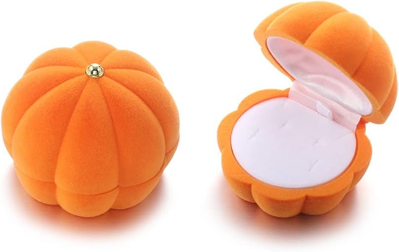 These pumpkin jewelry boxes help to keep your souvenir, and the corduroy inner lining keeps your rings from scratches. It has enough space to fit most sizes of rings or earrings.This is a very seasonal Halloween pumpkin shaped ring box. It can not only be used to store your anniversary ring, but also a very beautiful decoration