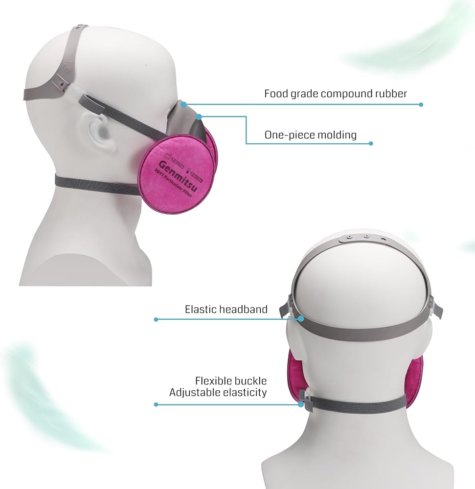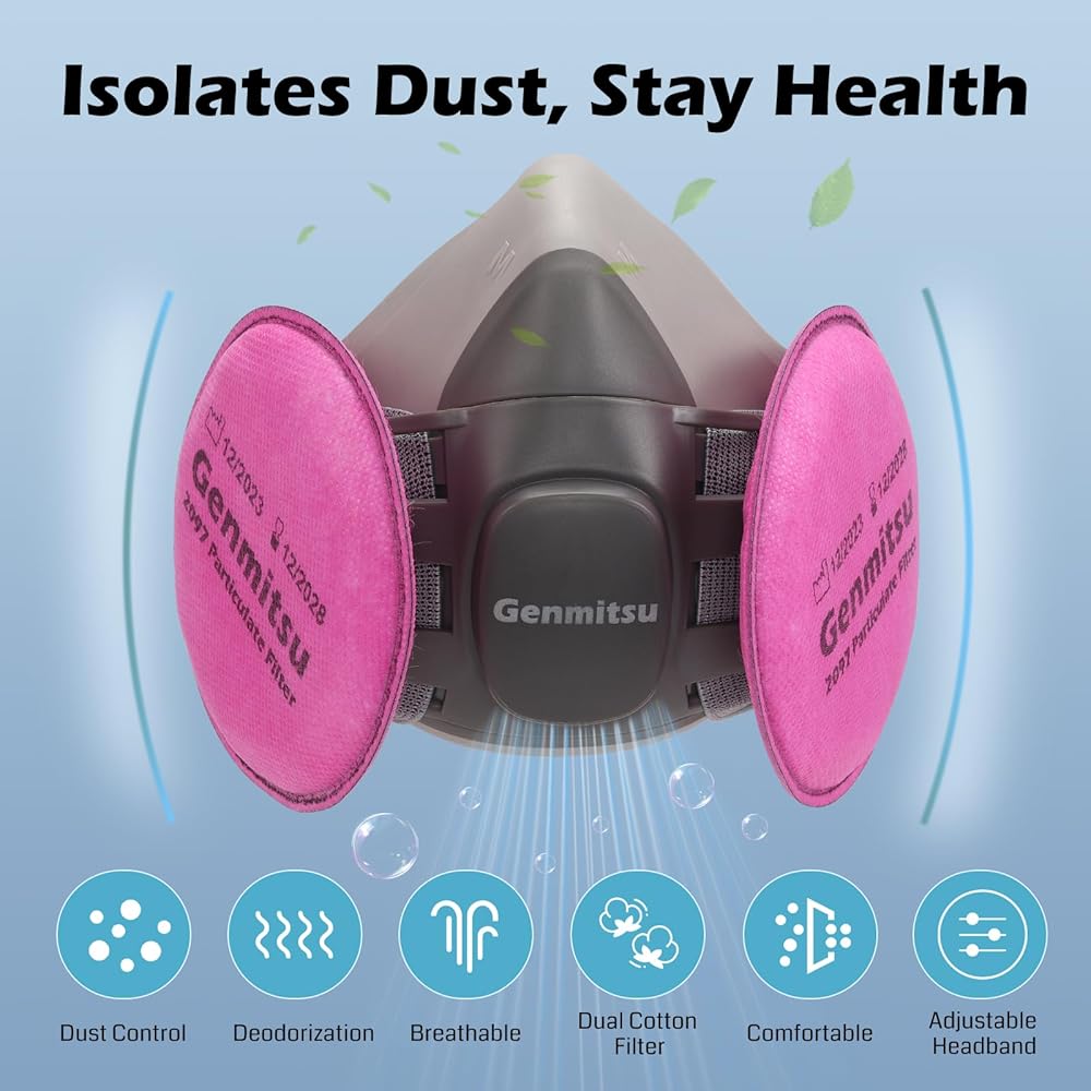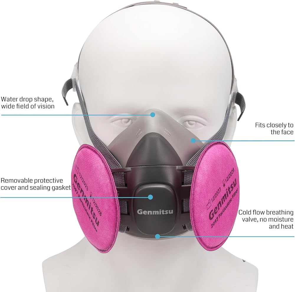 قناع تنفس نصف وجه 6200 من جينميتسو - قناع وجه قابل لإعادة الاستخدام للحماية من الجسيمات والغبار والمحمولة بالهواء، مرشحات قابلة للاستبدال لأعمال النجارة واللحام والقولبة والطلاء
