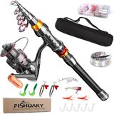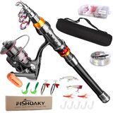 مجموعة صنارة الصيد، مجموعة صنارة صيد وبكرة تلسكوبية من ألياف الكربون مع طُعم خطي وخطاطيف معالجة وحقيبة حمل بكرة للبالغين أثناء السفر في المياه المالحة والمياه العذبة