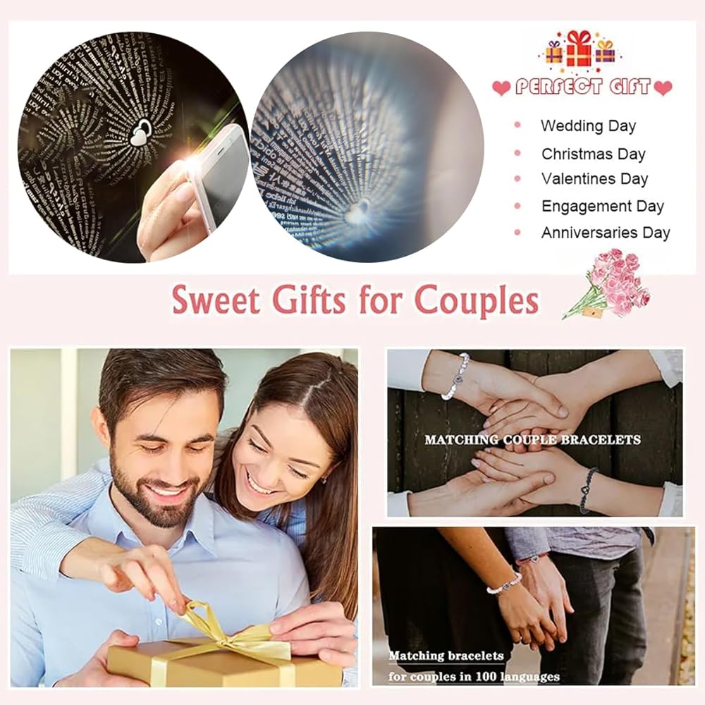 【أساور عرض فريدة من نوعها】بغض النظر عن مدى بعدك، يمكن لأحبائك البقاء معك. سوار إسقاط جميل يخفي سرك. قم بإلقاء الضوء عليه وعرضه على الحائط، أو استخدم كاميرا هاتفك المحمول، وسيتم عرض 100 لغة "أحبك".
