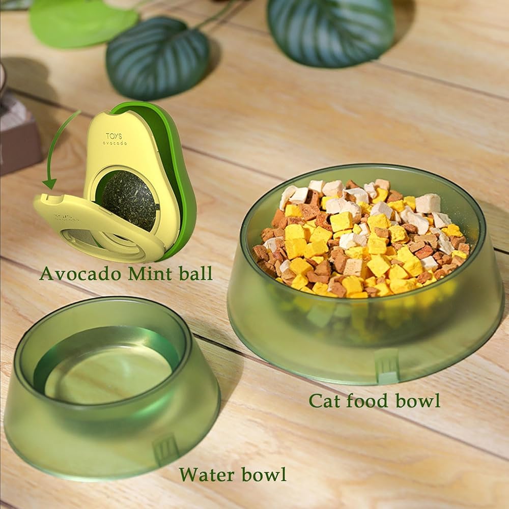 وعاء الحيوانات الأليفة الشفاف نونسليب القطط تغذية وعاء الماء وعاء الطعام حاوية الغذاء أطباق للقطط الكلب الحيوانات الأليفة أكل لوحة + الأفوكادو النعناع البري جدار الكرة وجبة خفيفة صحية للتدوير يعامل اللعب هريرة اللعب لعبة