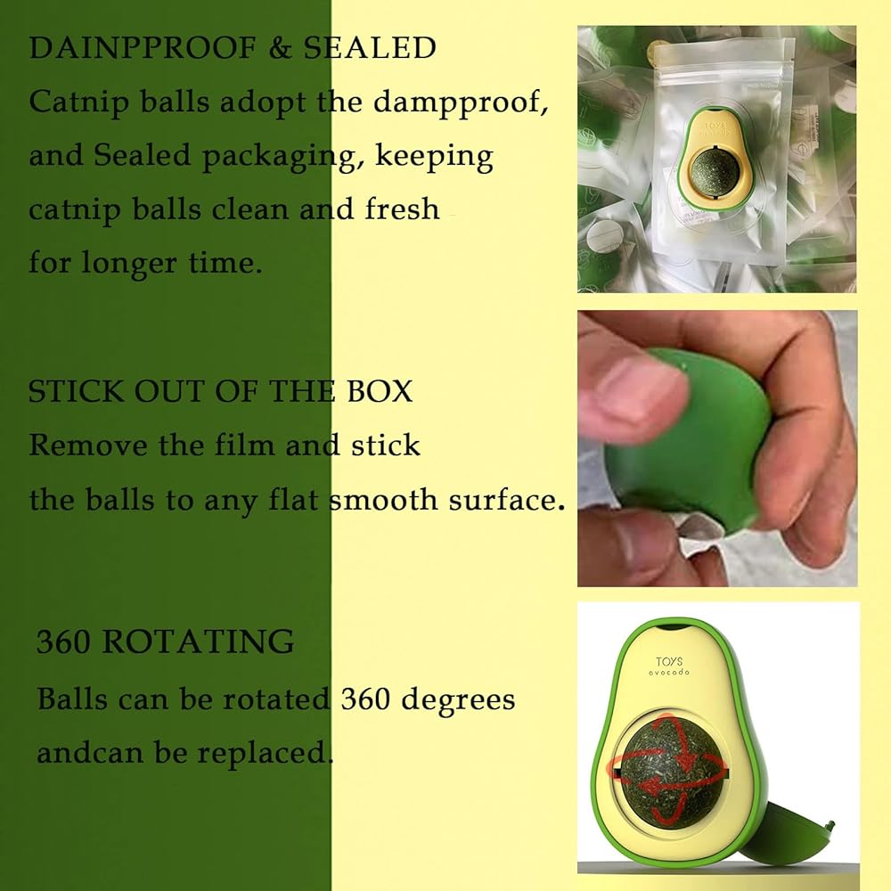 ★ تحتوي كرة النعناع البري هذه على مادة لاصقة قوية على الوجهين على الظهر، ويمكن لصقها بسهولة على سطح الجسم، حتى تتمكن القطط من اللعب بحرية، ويمكن أن تدور لعق الكرة بزاوية 360 درجة!