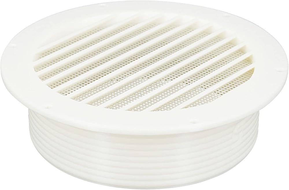 أنبوب عادم مكيف الهواء المحمول مقاس 5 بوصات، شفة مثبتة على الحائط في الهواء الطلق مع شاشة / شبكة حشرات مدمجة - خيط متعدد الاتجاهات (أبيض فاتح) 5MNT-OUT-NET