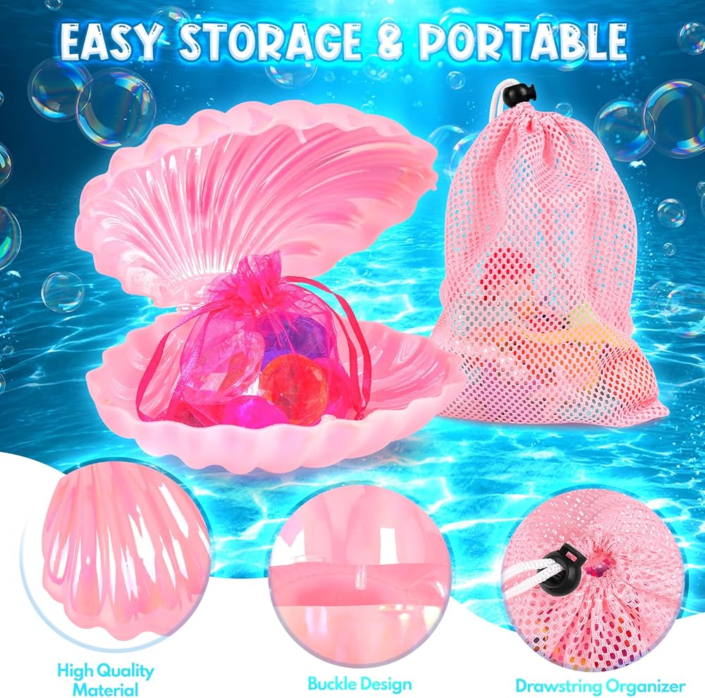 🧜【صندوق كنز بتصميم رائع】ألعاب حمام السباحة الخاصة بنا مجهزة بصندوق كنز ذو قشرة وردية زاهية، ليس فقط مظهر التصميم الخاص، رائع ولطيف، المادة لها ملمس لامع، ولكن أيضًا بسعة كبيرة، يمكنها حمل غلاف الأحجار الكريمة. سوار نجم البحر وجميع ألعاب الغرق في حمام السباحة. يمكن استخدامها كلعبة وكذلك كمنظم وديكور.