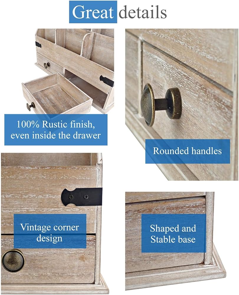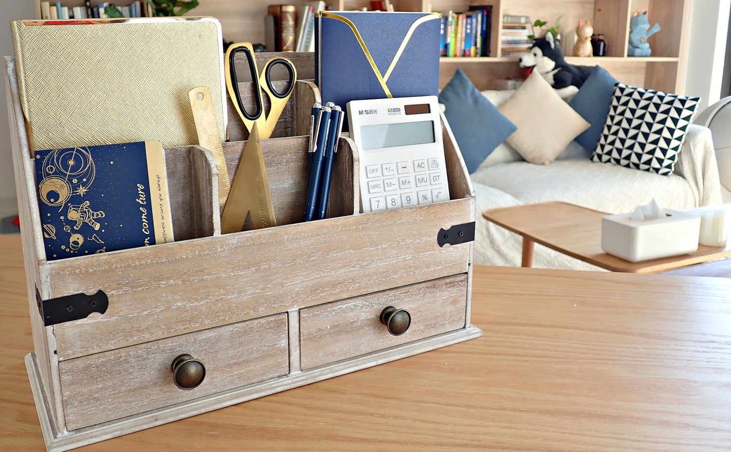 أدراج عميقة بمقابض - معظم أنماط أدراج منظم المكتب تأتي بدون مقابض. وإذا كنت قد واجهت هذا من قبل، فسوف تعرف أن الزاوية الغريبة لـ "ثقوب الأصابع" تجعل سحب الدرج صعبًا ولزجًا. لذلك أضفنا مقبضين - جميلان حيث أنهما عمليان لانزلاق سلس، يبلغ عمق كل درج 2 بوصة و6.5 × 5.4 بوصة حتى تتمكن من استيعاب كل شيء بدءًا من الأربطة المطاطية وحتى المفاتيح إلى أجهزة iPhone!