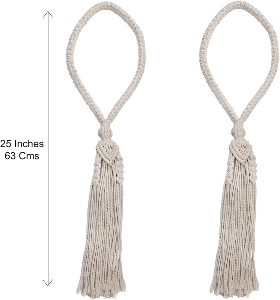 Cotton Macrame Craftsmanship: Skillfully woven from delicate cotton macrame, these curtain ropes exude an enchanting boho rustic allure, elevating the innate beauty of any setting with their intricate patterns and organic texture, infusing spaces with a serene and earthy elegance.