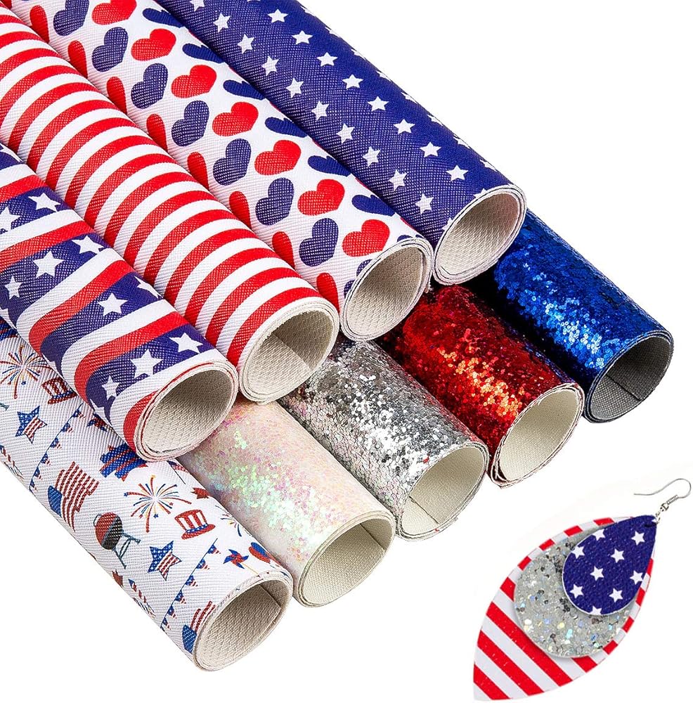 9 قطع من أوراق الجلد الصناعي ذات العلم الأمريكي مطبوعة لامعة لصنع الأقراط والأقواس DIY يوم الاستقلال الوطني في الرابع من يوليو، 11.8 × 8 بوصة