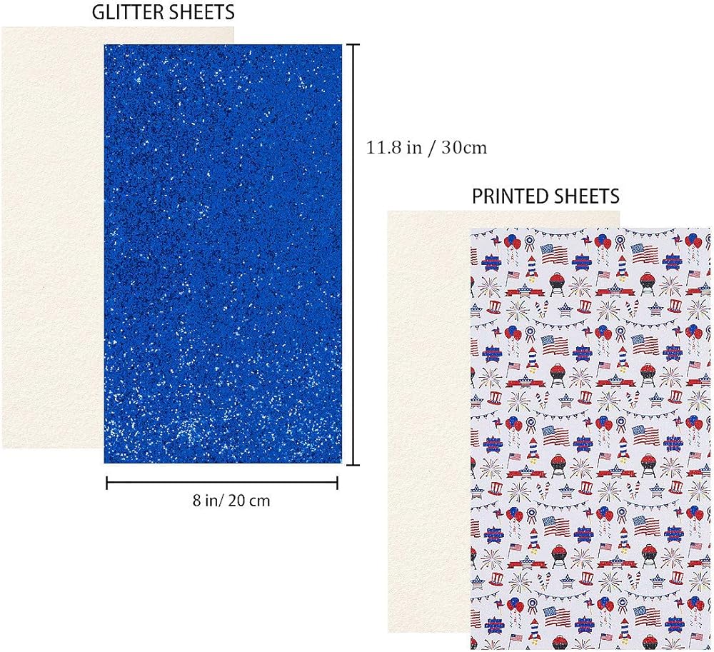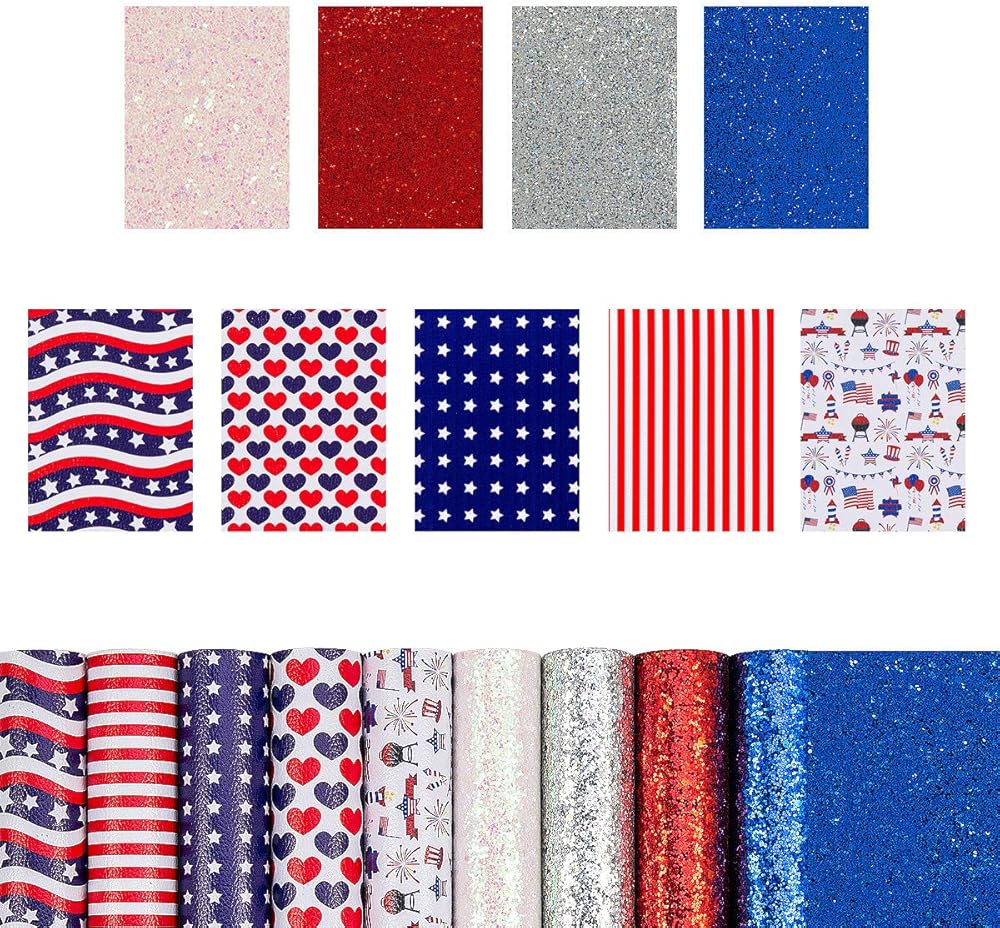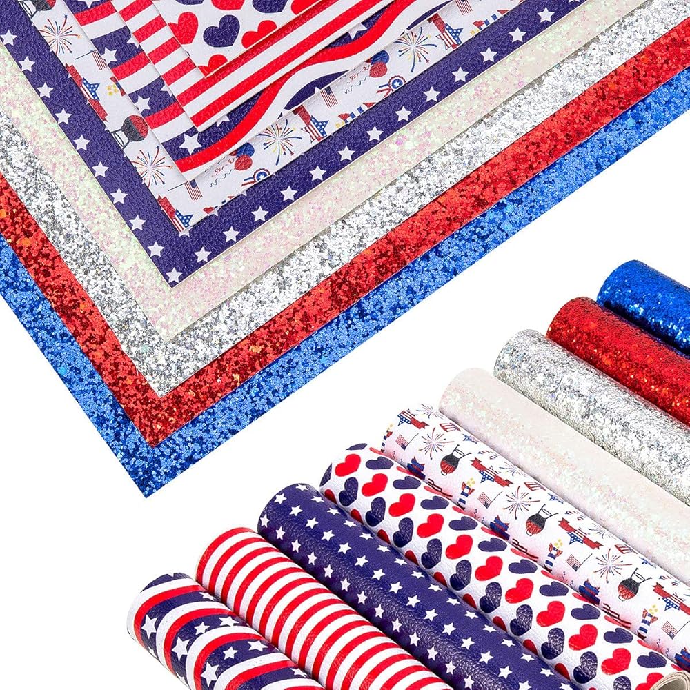 12 x 8 Inches Fourth of July Themed Glitter and Printed Faux Leather Sheets for Leather Earrings Making Bows Craft DIY