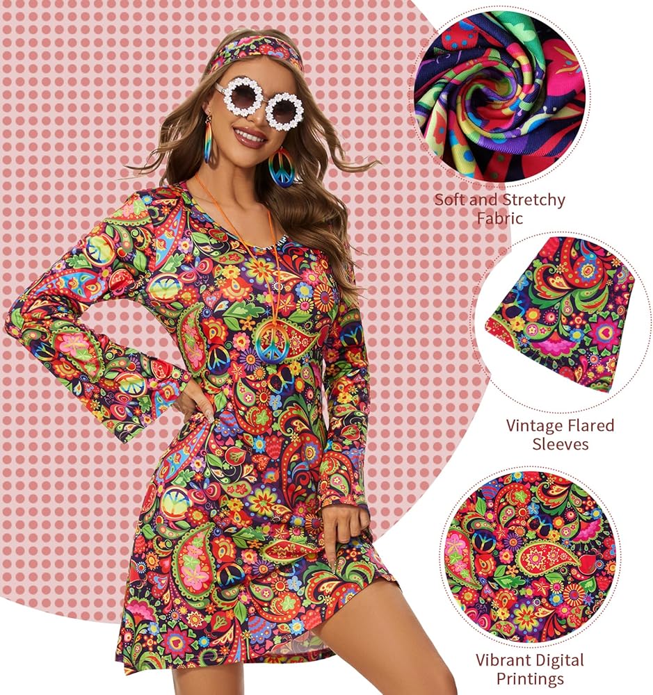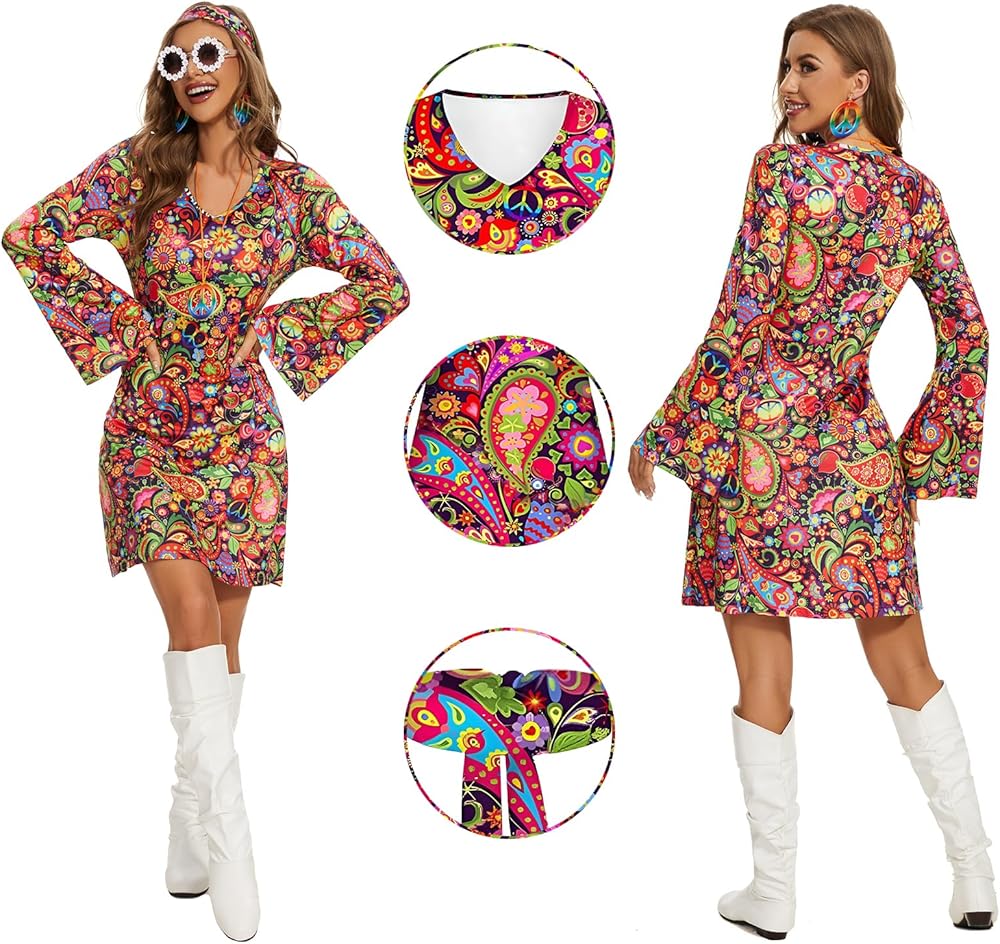 【فساتين أزياء الستينيات والسبعينيات 】أزياء الهالوين الرائعة للنساء والفتيات المراهقات، مناسبة لجميع المواسم. ليس مثاليًا فقط للحفلات القديمة، والهالوين، والحفلات ذات الطابع الشخصي، والحفلات التنكرية، والرقص، والحفلات التنكرية، والمهرجانات الموسيقية، والعطلات، ولكنه أيضًا مثالي للارتداء اليومي الكاجوال.