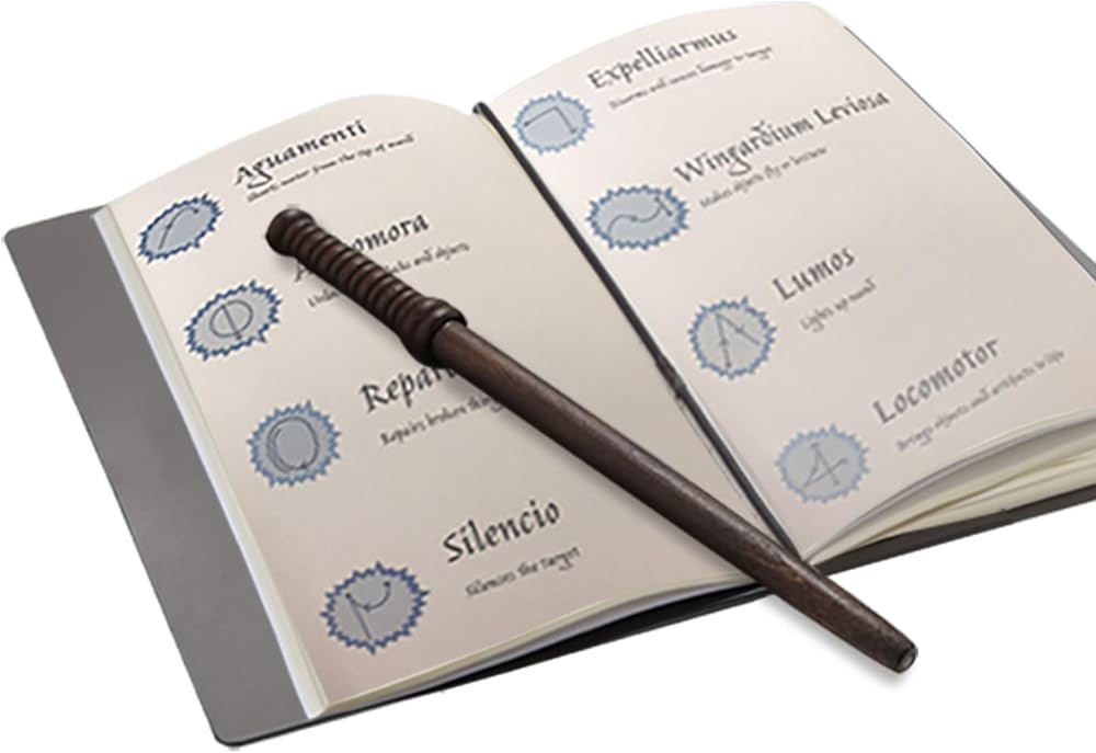 • Cast a spell with this notebook– includes the most popular real spells and their magic movements from the popular movies and books. A description for the well known charms is also included.