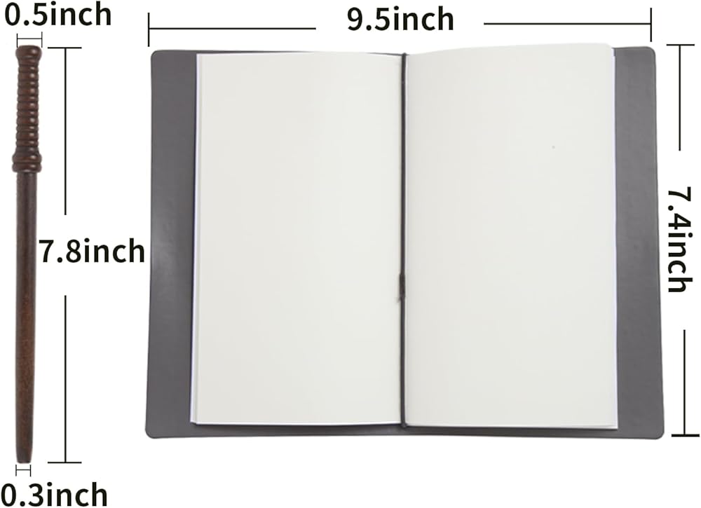 • Leather journal cover keeps the secret spells safe. 50 blank pages in the back to add your own spells and lessons learned. Notebook size is 14 x 10 cm.