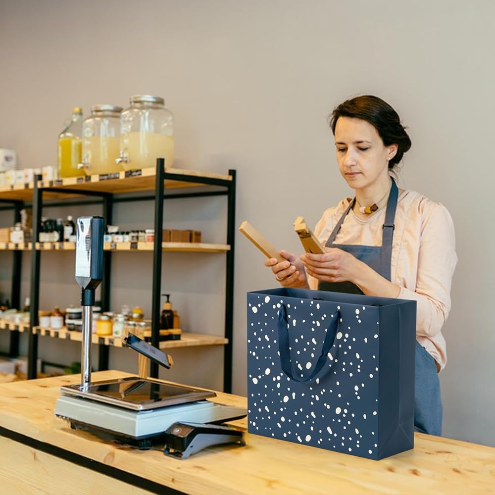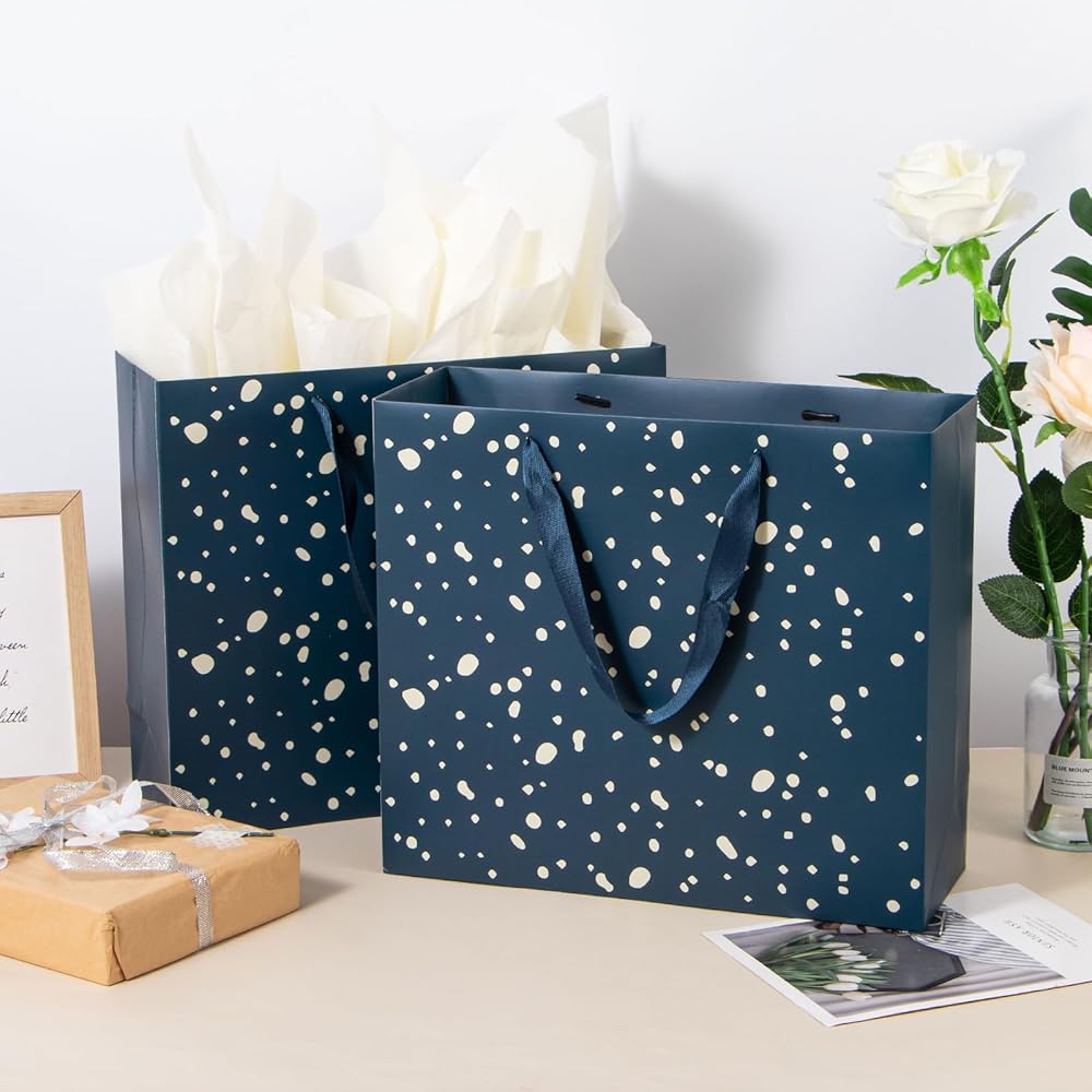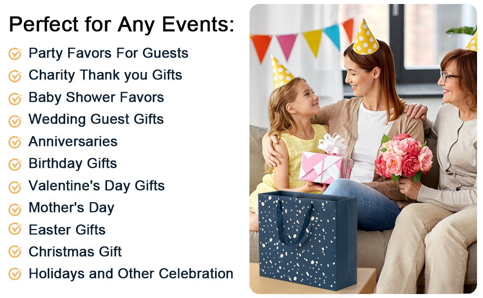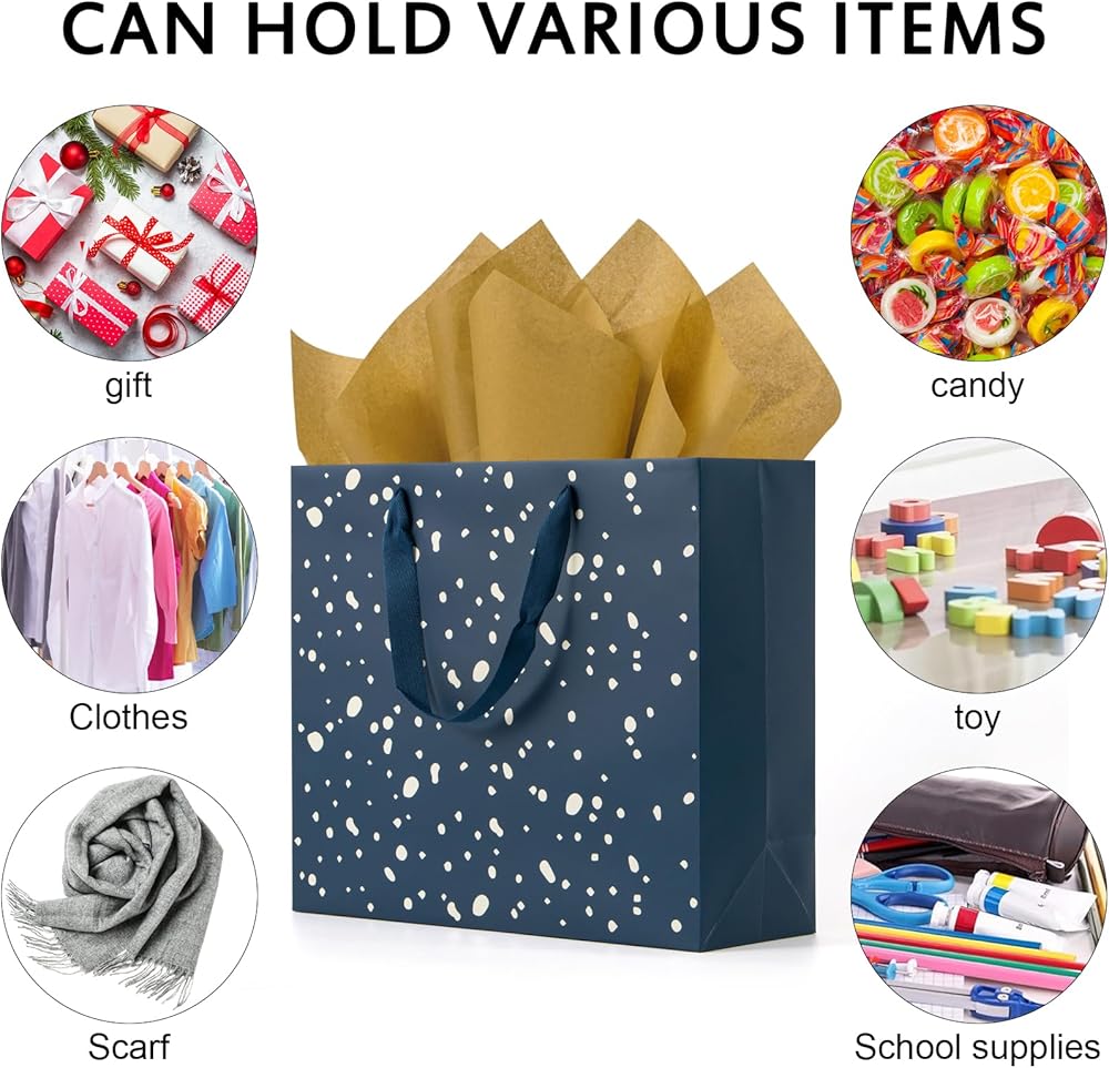 العبوة: تتضمن المجموعة 12 كيس هدايا. الحجم هو 12.6 بوصة طول × 4.5 بوصة ارتفاع × 11 بوصة عرض. مقابض قوية لحمل أغراضك التافهة بسهولة،