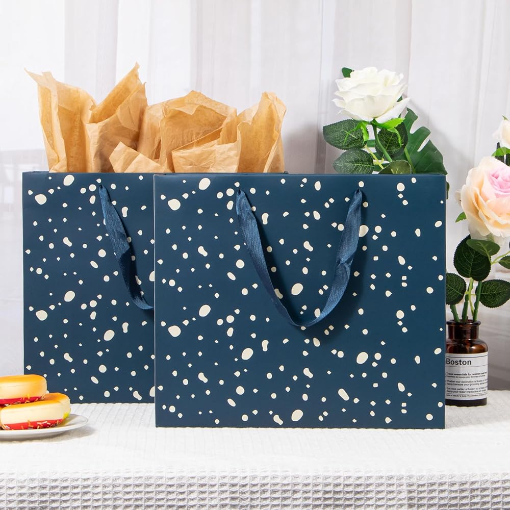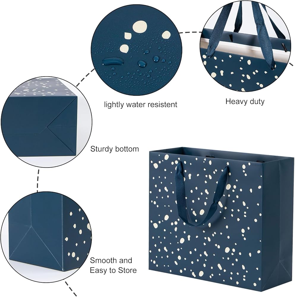 حقائب هدايا قابلة لإعادة الاستخدام: إنها مريحة للاستخدام مع تصميم المقبض. تعتبر حقائب الهدايا هذه مثالية لحفلات استقبال المولود الجديد، وحفلات أعياد ميلاد الأطفال، وهدية عيد ميلاد الصبي، وما إلى ذلك. وهي رائعة لتغليف الهدايا في حفلتك، مما يمنح ضيوفك متعة بصرية لطيفة؛ يمكنك تخزينها وإعادة استخدامها عدة مرات، مما يجعلها الاختيار المستدام. بالإضافة إلى ذلك، فإن المادة الورقية عالية الجودة تجعل هذه الحقائب متينة ومقاومة للتمزق