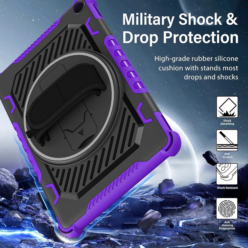 تصميم خفيف الوزن وقوي ومقاوم للسقوط بطبقة مزدوجة: توفر الحافظة الصلبة ذات الطبقة المزدوجة حول جهازك اللوحي حماية كاملة من السقوط بزاوية 360 درجة؛ غلاف داخلي من مادة TPU ممتص للصدمات + جراب خارجي صلب من البولي كربونات ضد السقوط العرضي والصدمات