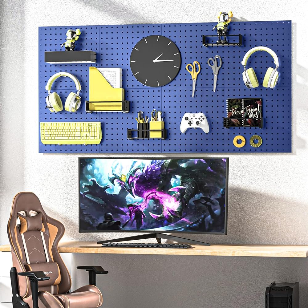 🌱موفر للمساحة واسع الاستخدام - ألواح بيجبورد معدنية تعمل بشكل مثالي لغرفة الخياطة في المرآب وغرفة الحرف اليدوية والمطبخ والمكتب والاستوديو وأدوات غرف الأطفال. حتى للأطفال لتخزين القرطاسية أو الأشياء الصغيرة بسهولة. تستفيد لوحة المشابك الجدارية من مساحة الحائط بشكل كامل لتخزين الأغراض الصغيرة. حافظ على كل شيء منظمًا وفي متناول اليد!