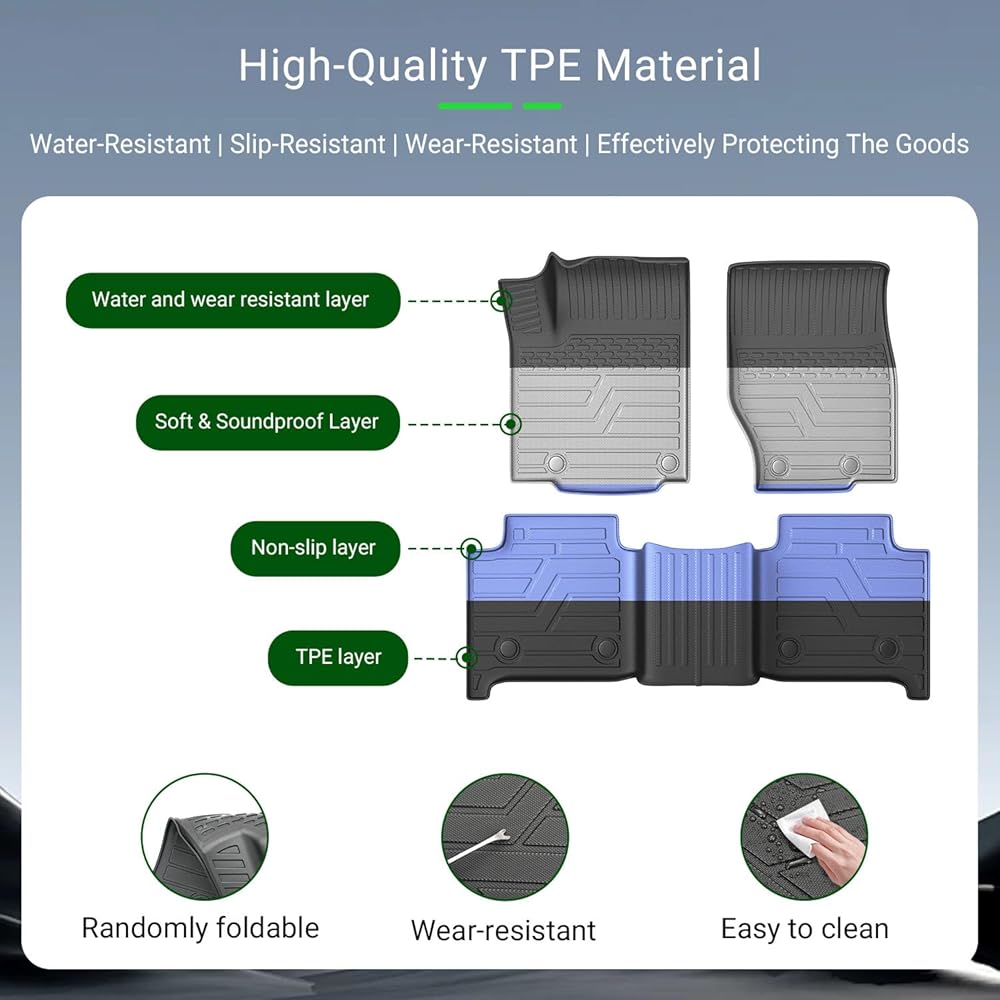 • المواد: سجادات البضائع مصنوعة من مادة TPE. إنها ثابتة ومتينة ويمكن استخدامها لفترة طويلة. كما أنها لا تحتوي على رائحة. فهي تتمتع بمقاومة جيدة للتآكل، لذلك يمكن أن تضعف تأثير العناصر. تأثيره المقاوم للماء جيد جدًا أيضًا، وعادةً ما يمكن غسله مباشرة بالماء.