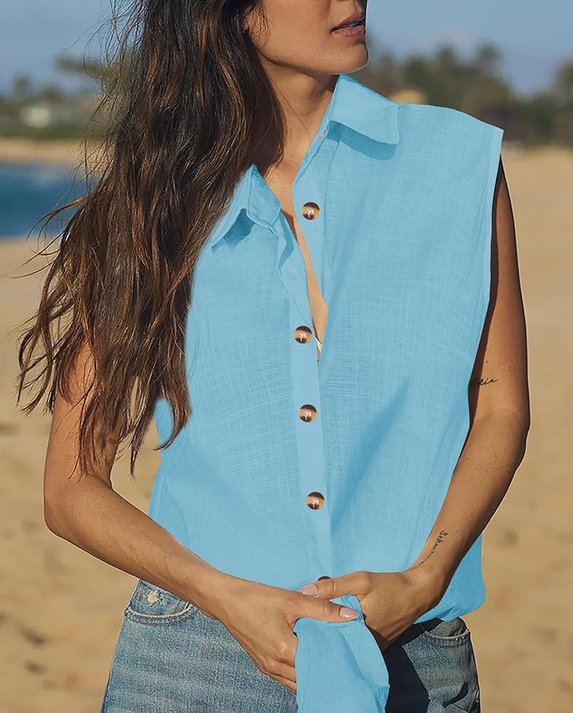 قميص نسائي بدون أكمام، رقبة على شكل حرف V، لون موحد. هناك طرق عديدة لارتداء هذه البلوزة، فهي يمكن أن تضيف سحرًا إليك، وهي مثالية للطقس الحار أو تحت الجزء العلوي.