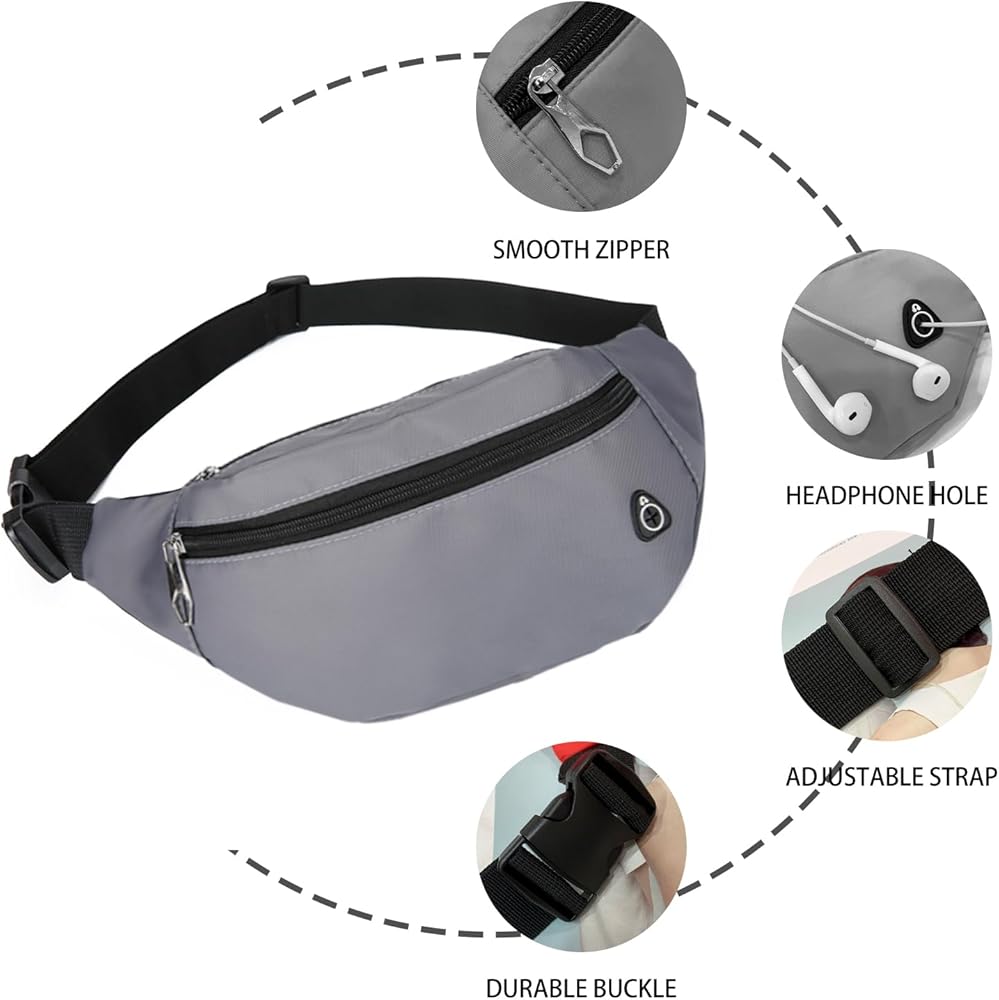 حزام خصر قابل للتعديل: تحتوي حقيبة الخصر على حزام نايلون قابل للتعديل، مما يجعلها مثالية للرجال والنساء والمراهقين.