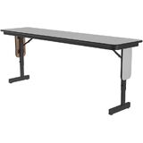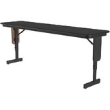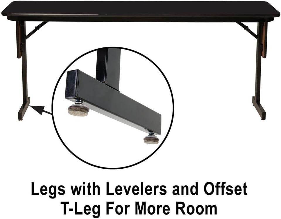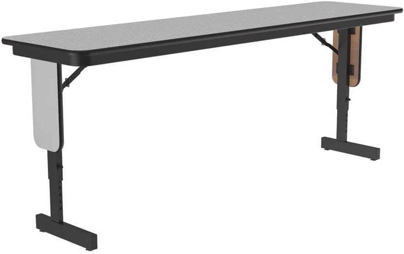 Correll Panel Leg Folding Classroom Training and Seminar Tables. Easily adjusts in height from 22" to 30" in 1" increments. 18"x96" Black Granite Thermal Fused laminate surface, resists scratches and stains and has a hard, flat writing surface. Thermal Fused Laminate (TFL) is a resin infused laminate not glued on like high pressure laminate, it is fused to the board using a heat treatment process. Heavy Duty 3/4" thick top is sealed on both sides preventing moisture from entering the table and causing warping. Steel offset legs. Unique Knife lock folding legs makes the underneath completely open for maximum leg room and comfort. Stays open securely with automatic lock open legs. Black T-Mold edging protects the table and your walls. Nylon guides on legs helps protect floors and carpets. Classy Panel Leg design. Heavy Duty construction Ideal in public and commercial spaces including schools and places of worship. Made in the USA. YOU CAN COUNT ON CORRELL: Correll was established in 1969 and has been in business for over 50 years. With our outstanding Standing Customer Service, innovative new product lines, and the largest selection of Folding Tables available from any manufacturer, now, more than ever, you can count on Correll. In an age where it seems like everything is imported, over 90% of Correll products are still Made in the USA at our factory in Arkansas