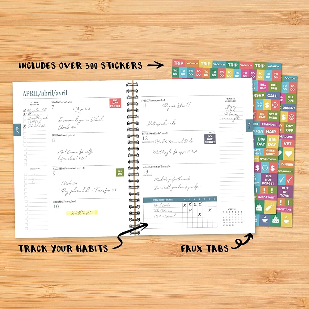 جودة الصورة المثالية - مطبوعة بأحبار الصويا على ورق عالي الجودة معتمد من مجلس رعاية الغابات (FSC)، تحتوي المخططات الأسبوعية الأكاديمية لدينا على شريط حلزوني وعروات شهرية صناعية تجعل الوصول إلى المعلومات أمرًا سهلاً، وأكثر من 300 ملصق لتزيين الأيام الخاصة مثل أعياد الميلاد. وغيرها من الأحداث القادمة في التقويم الاجتماعي الخاص بك.