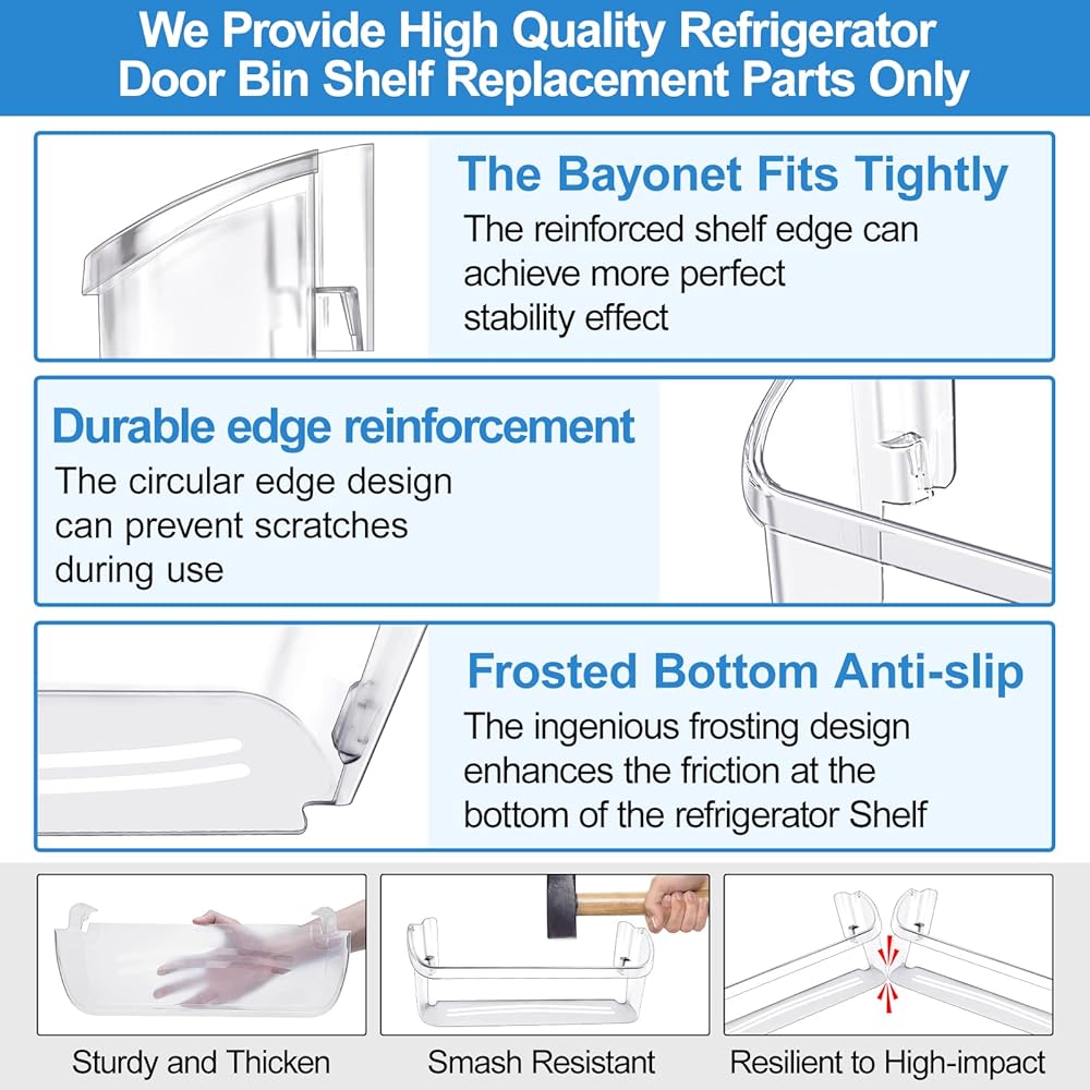✅【Feature】:1, Upgraded material-high-quality resin material, thicker food-grade material, environmentally friendly and healthy. 2,Strong and Ultra Durable - Good bearing strength,Not Easy to break. 3,High Quality - The quality exceeds OEM product specifications. 4,Exact fit - Fits OEM Standards. 5,Easy to install – No tools or additional parts are needed to install this door bin, Simply snap the mounting tabs into place. 6, Easy to clean and maintain.