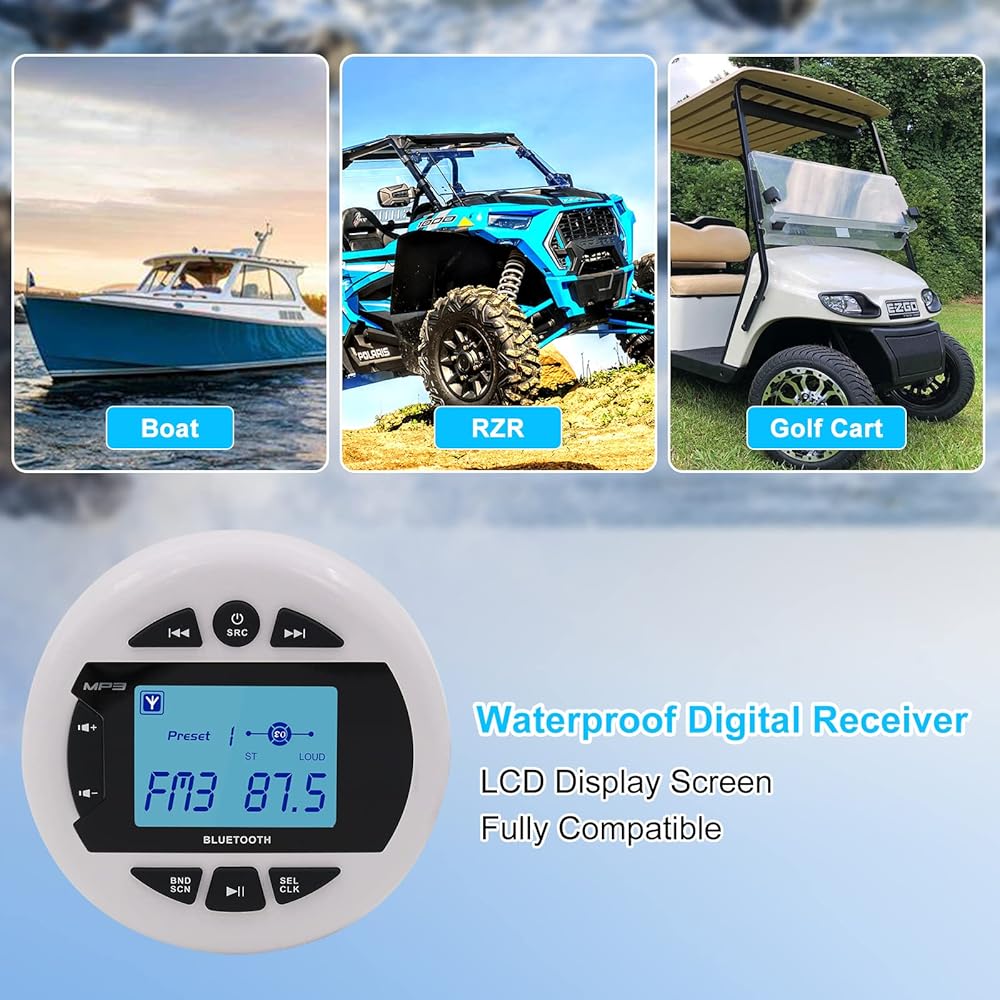 *عالمي ومقاوم للماء: مجموعة استريو الراديو هذه مصنوعة من هيكل مقاوم للماء من الدرجة البحرية بتصميم دائري مدمج عالمي يناسب مقياس سرعة الدوران بالحجم القياسي. هيكل مقاوم للماء، لا داعي للقلق بشأن العناصر!