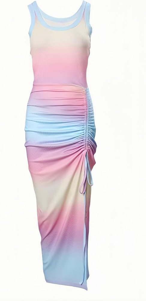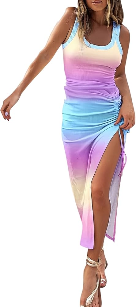 [التصميم]: فستان نسائي صيفي طويل كاجوال، خامة ناعمة قابلة للتمدد، مناسب وجذاب، يمكن ارتداؤه بسهولة لأعلى أو لأسفل. فستان نسائي بدون أكمام، بدون أكمام، فتحة جانبية عالية وتصميم مناسب يظهر منحنياتك المثيرة بشكل مثالي.