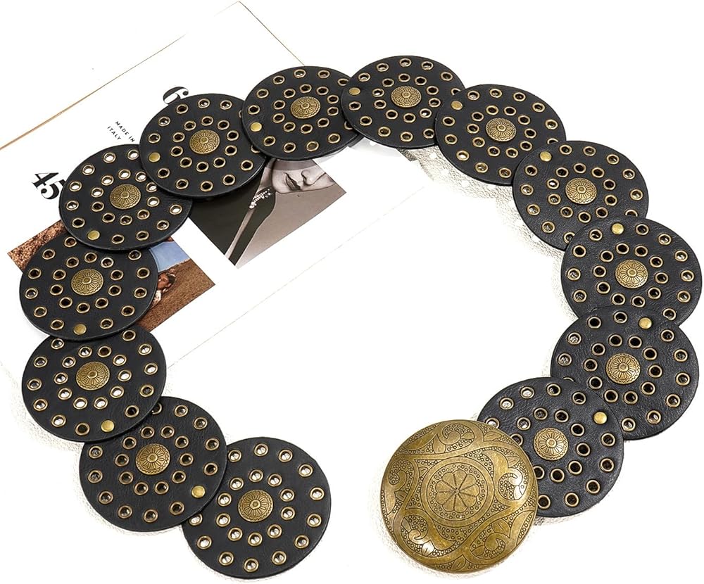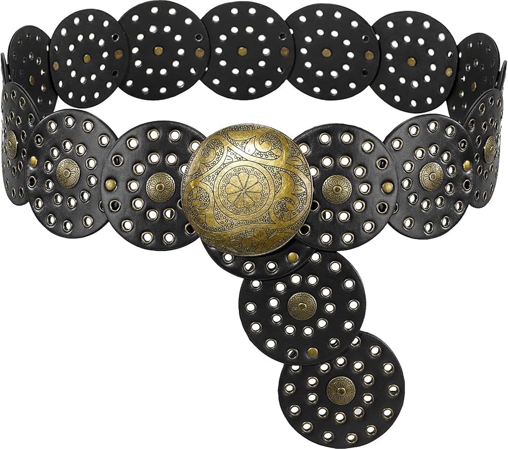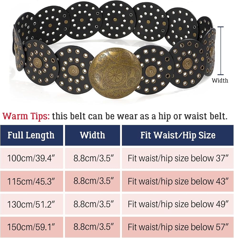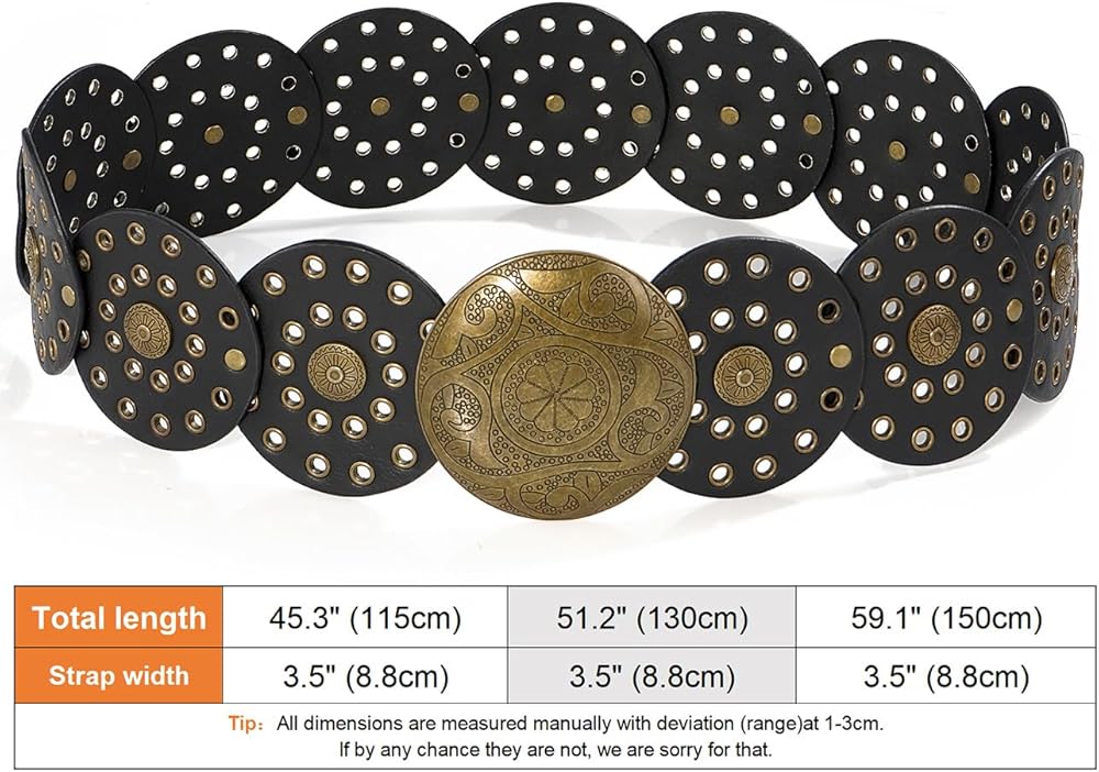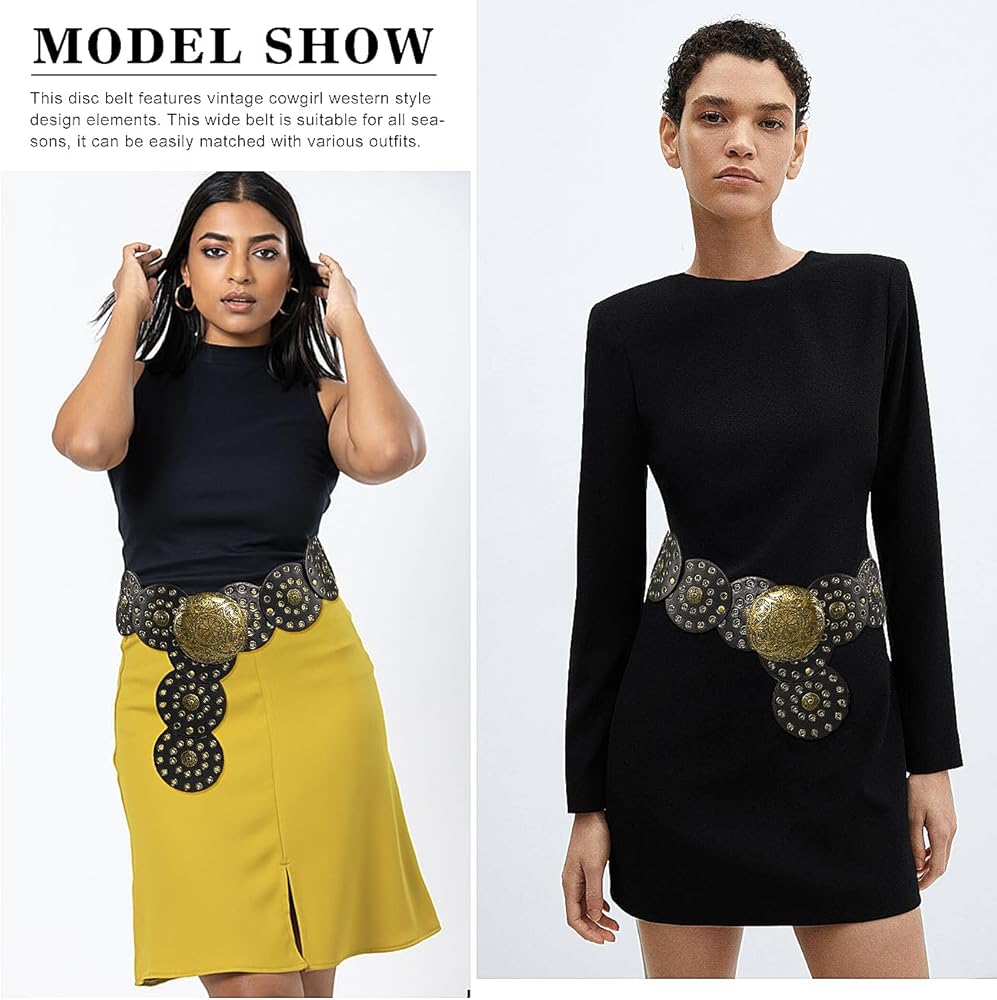 Matching: This disc belt features vintage cowgirl western style design elements. This wide belt is suitable for all seasons, it can be easily matched with various outfits, such as dresses, skirts, sweaters, shirts, down jackets or other clothes.