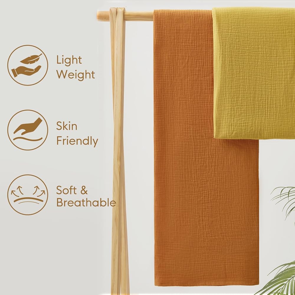 تهوية فائقة: كل قماط من الموسلين بطبقة واحدة رفيع بما يكفي لتدفق الهواء بشكل ممتاز، مما يمنع طفلك من ارتفاع درجة الحرارة ويضمن نومًا مريحًا.