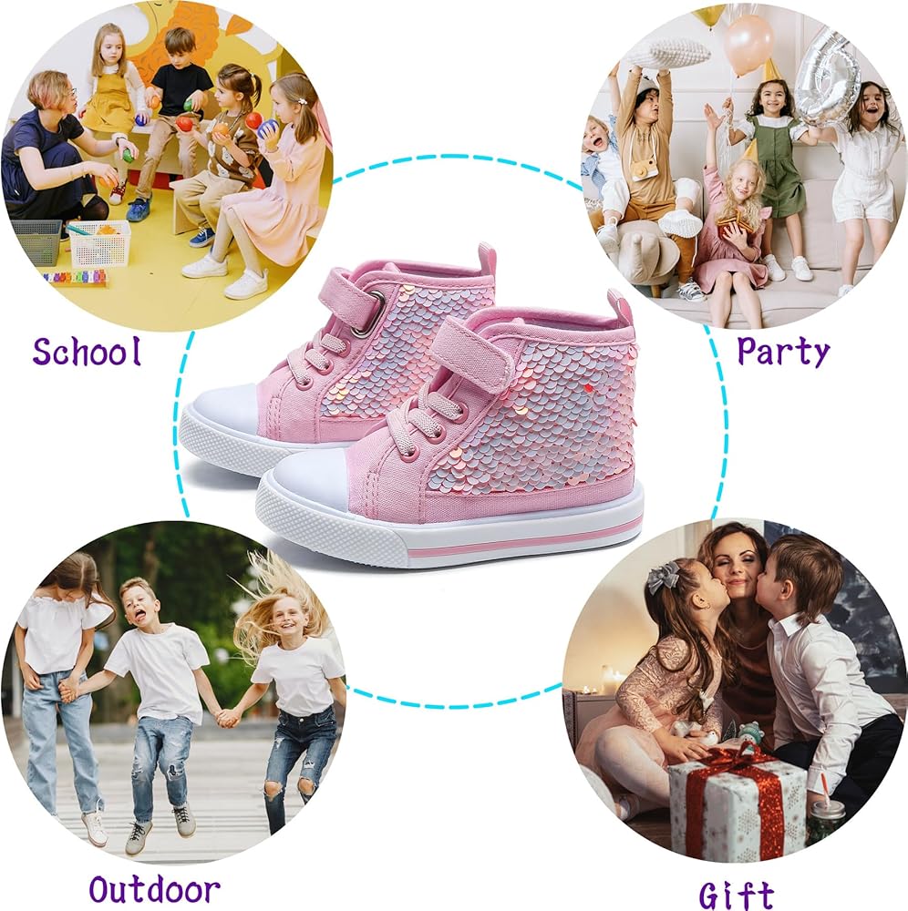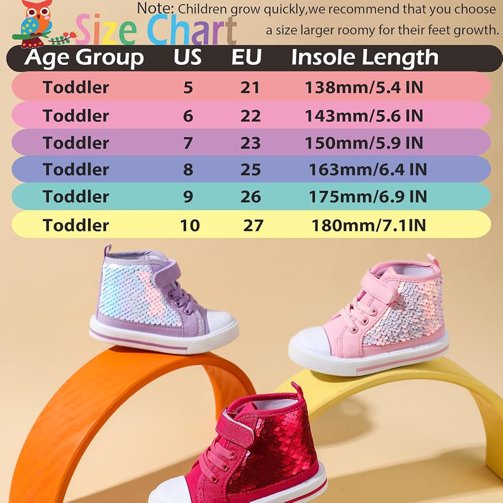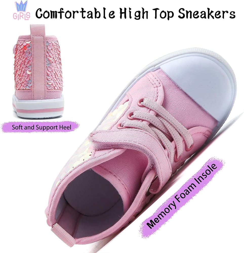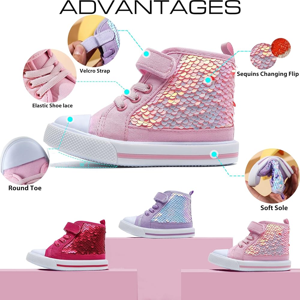 • 【أحذية رياضية لطيفة للفتيات بالترتر】هذا الحذاء الرياضي القماشي اللامع ذو تصميم دائري عند الأصابع، هذه الأحذية واسعة ومريحة، وتترك مساحة كافية للقدمين، وتعتني بالنمو الصحي للأطفال. أحذية للفتيات الصغيرات مصممة للارتداء اليومي وملاءمة فائقة. يجب أن يكون لكل فتاة زوج خاص بها من الأحذية اللامعة.