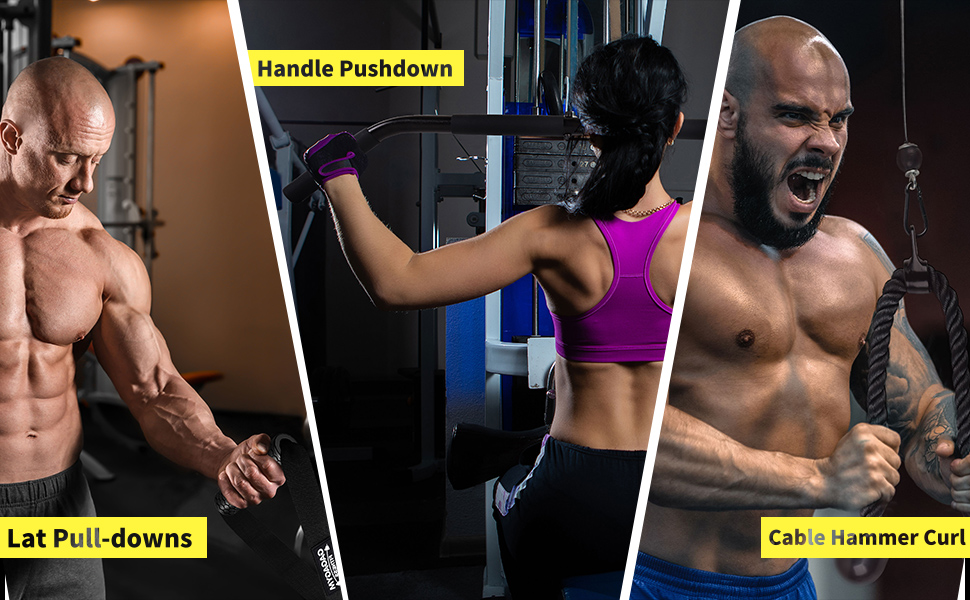 💪【سهلة التجميع والنقل】يمكن توصيل نظام البكرة ثلاثية الرؤوس بسهولة بأرفف الطاقة ورف القرفصاء وقضبان السحب والعوارض وأي مكان يمكن تركيب الحزام فيه. إنها توفر تنوعًا رائعًا لصالات الألعاب الرياضية المنزلية والجراج. واستوديوهات التدريب ومراكز العلاج الطبيعي وبيئات التمرين المختلفة.
