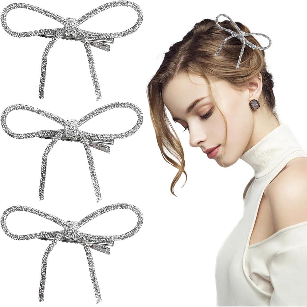 3 قطع من مشابك الشعر المصنوعة من حجر الراين دبوس شعر معدني غير قابل للانزلاق مشابك كريستال منقار البط وعقدة على شكل فيونكة للنساء والفتيات | هدايا العيد | للشعر الرقيق | مجوهرات الزفاف الشعر دبوس الشعر الزفاف