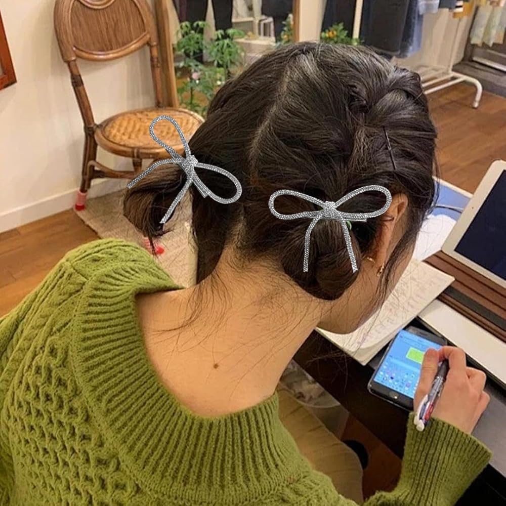 【PACKING LIST】You will receive 3 shiny bow hair clips, 3.78in*2.77in, perfect size, attracting people's attention at the first time, making you the focus of attention in public places