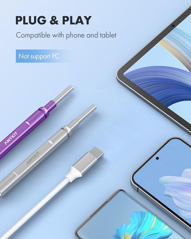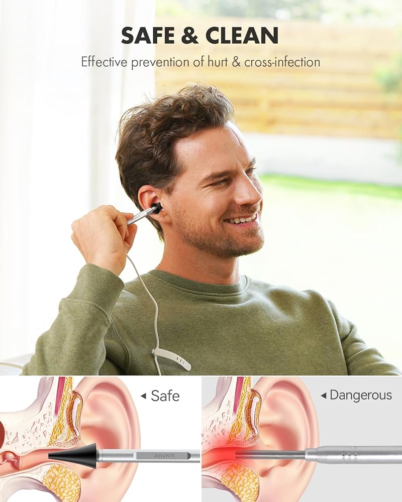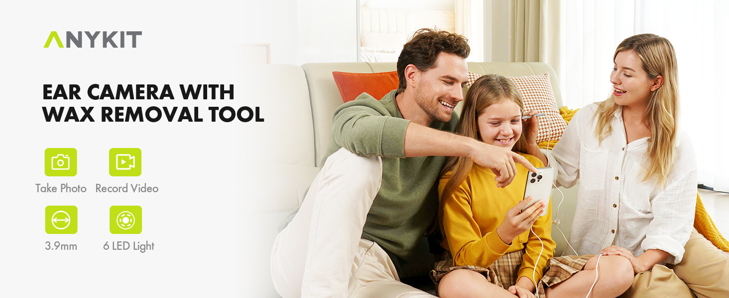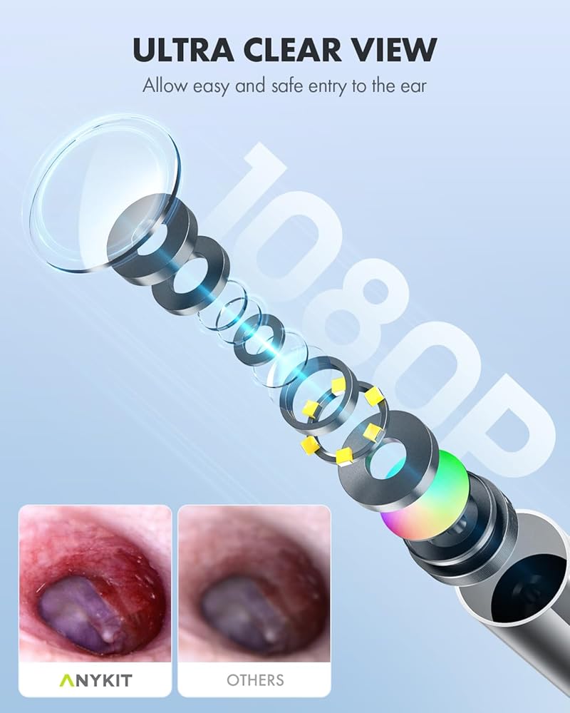 محتويات العلبة: منظار الأذن الرقمي Anykit، محول Lightning، 3x منظار الأذن، 2x ملاعق الأذن، دليل المستخدم