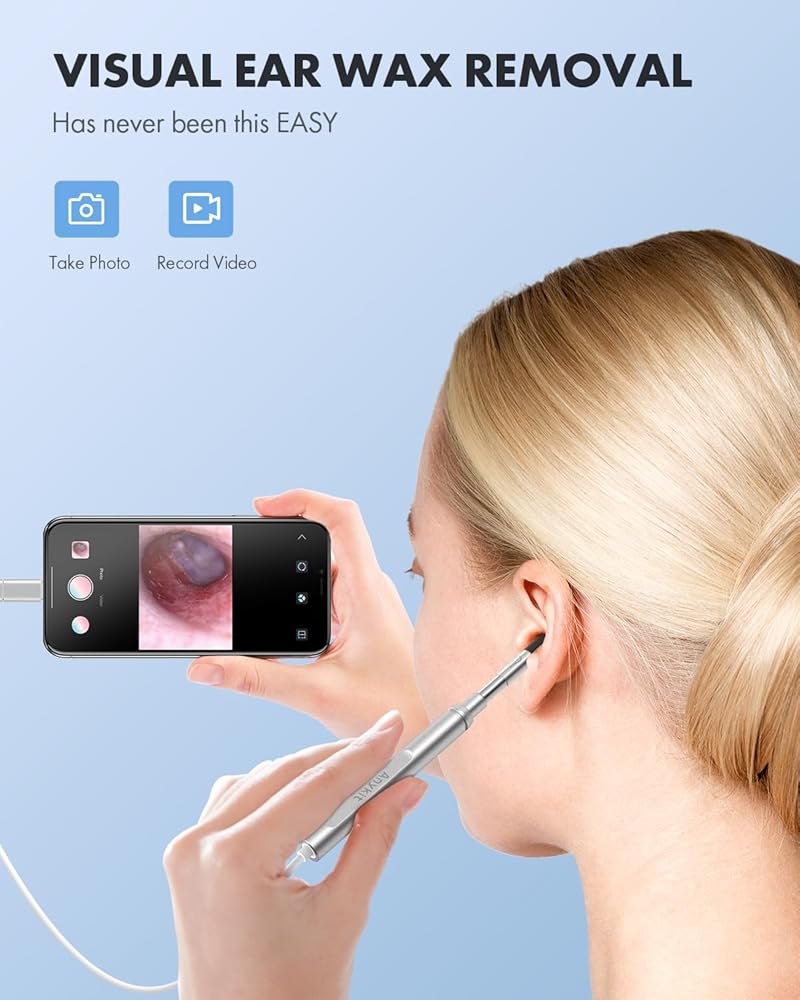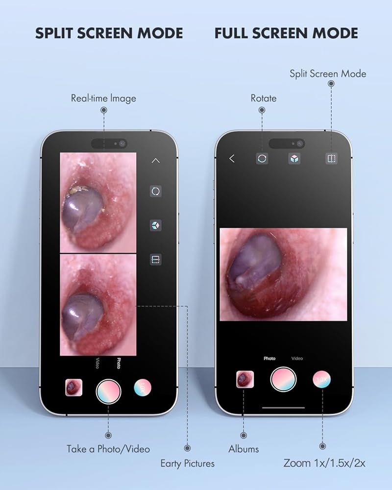 وفر وقتك وأموالك - تدعم كاميرا الأذن هذه التقاط الصور وتسجيل الفيديو على جهازك عبر التطبيق، ويمكنك حفظ الصور/مقاطع الفيديو وإرسالها إلى أطبائك للحصول على استشارة احترافية سريعة وسهلة.
