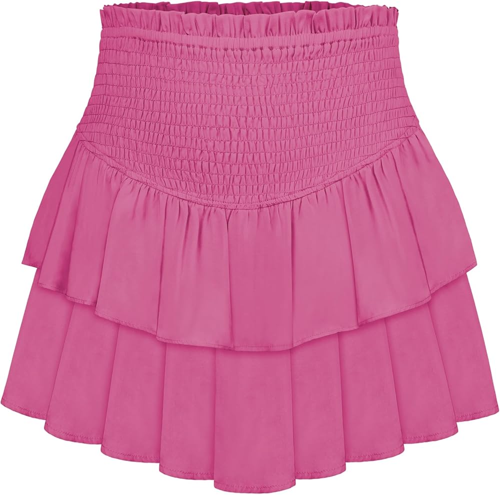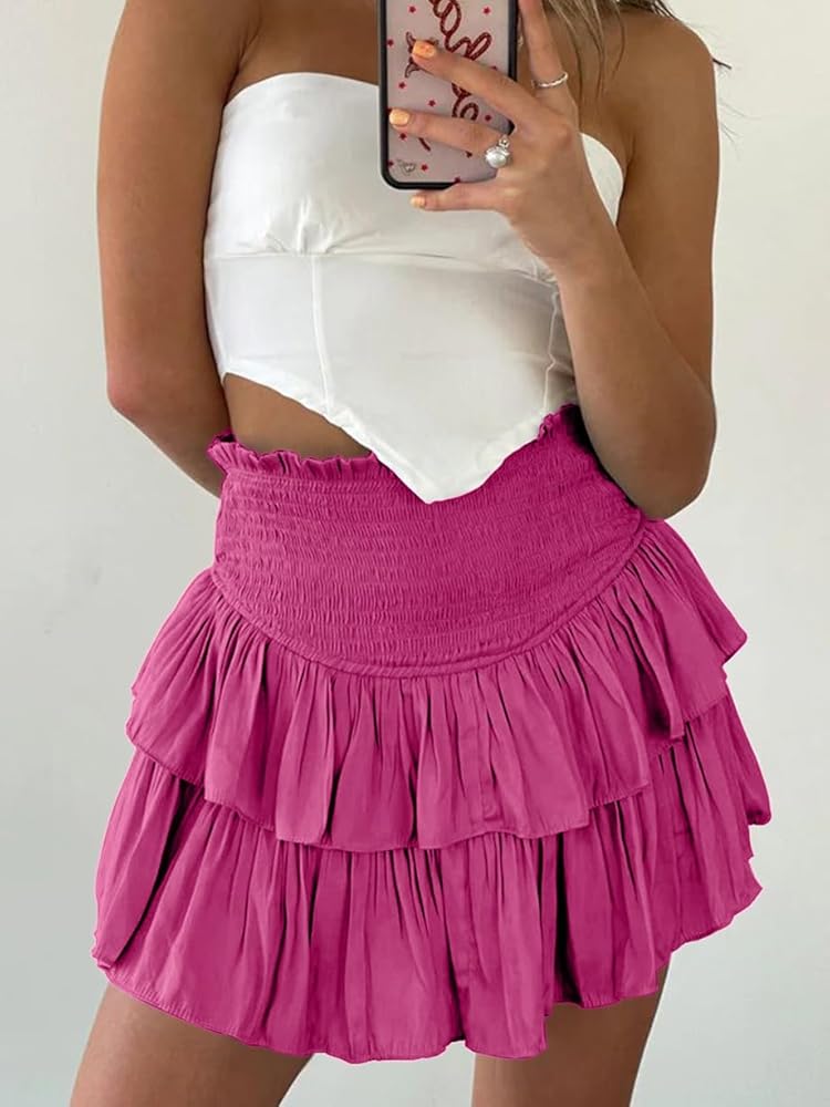 المواد: تنورة قصيرة مكشكشة من MISSLINLIN للسيدات مصنوعة من البوليستر، لون ثابت، لا يمكن رؤيته على الرغم من ذلك، خفيفة الوزن مع خصر مطوي عالي المرونة، تنورة قصيرة ذات طبقات تبدو جيدة ومريحة في الارتداء.