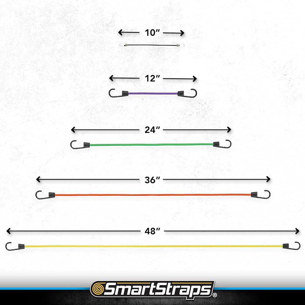 QUALITY AND STRENGTH – SmartStraps Adjustable Bungee Cords Assorted Sizes eliminates the hassle of needing multiple lengths of bungee cords. The reusable storage case keeps every bungee you need in one place.