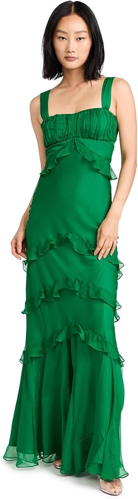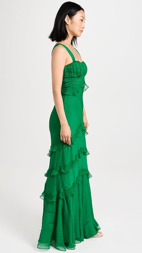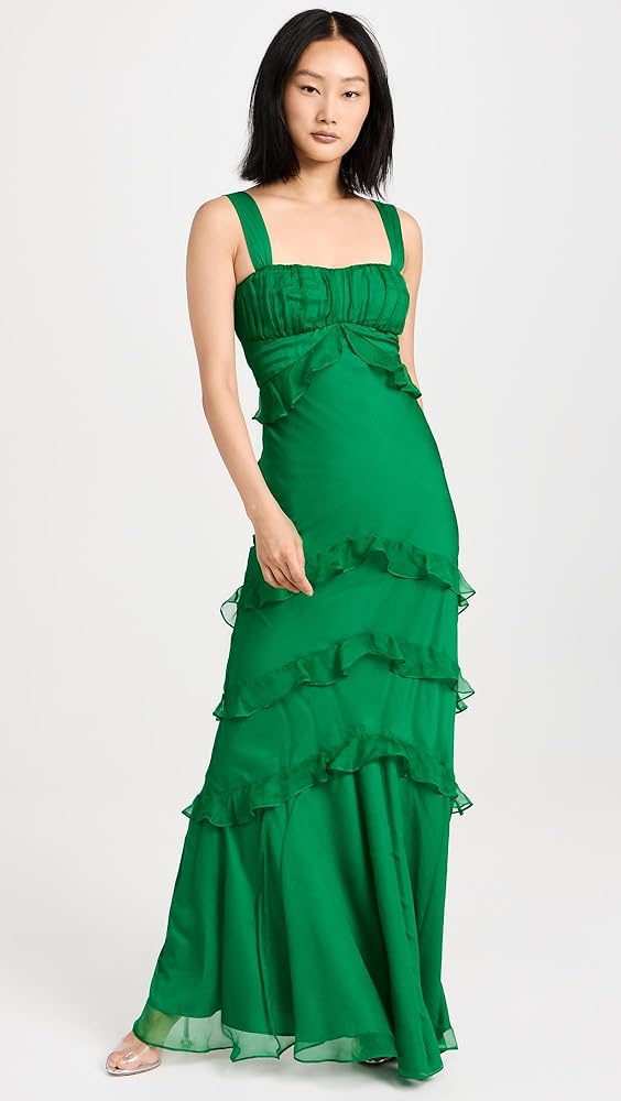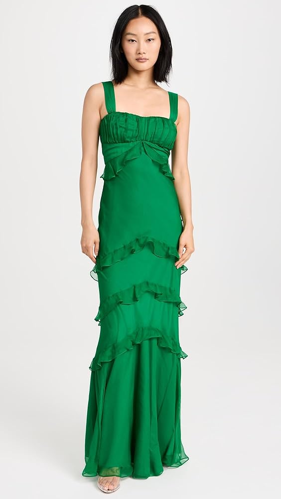 - تمثال نصفي مكشكش، خصر إمبراطوري، زخرفة مكشكشة ذات طبقات